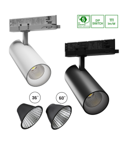 Faretto LED per binario trifase potenza regolabile 15-27w Andromeda – De Sanctis Light & Design
