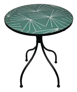 Tavolo da Giardino in Acciaio con Piano Ceramica Decorata DECOJARDIN Rotondo 80xh75 NEW AGE