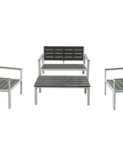 Set da Giardino in Acciaio e HDPE con Tavolo + 2 Poltrone + Divano 2 Posti METALWOOD TWILIGHT