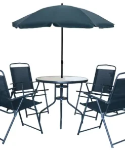 Set da Giardino in Acciaio e Textilene con Tavolo Pino Vetro + 4 Sedie + Ombrellone FUNNY BLACK