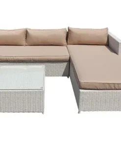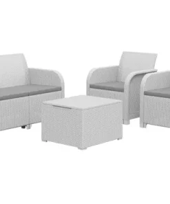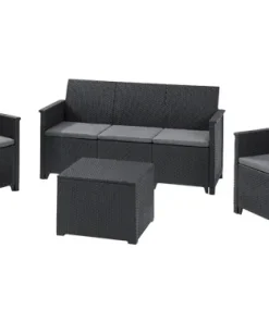Set da Giardino in Rattan con Tavolo Contenitore + Divano e 2 Poltrone con Cuscini KETER ROSALIE