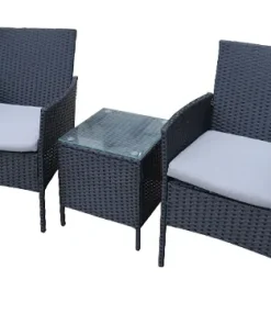 Set da Giardino Telaio Acciaio PE Effetto Rattan con Tavolo + 2 Poltrone con Cuscini RADICAL