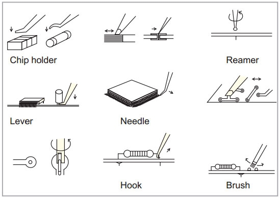 Questo kit contiene strumenti specializzati necessari per lavori di saldatura: supporto per chip, leva, forcella, raschiato, ago, gancio, alesatore, coltello, spazzola.