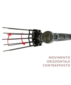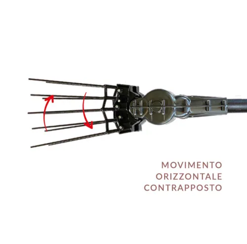 Questo sistema, oltre a garantire bassissime vibrazioni della macchina, risulta particolarmente performante nella raccolta delle olive (anche le più tenaci) facendole cadere nel perimetro della pianta.