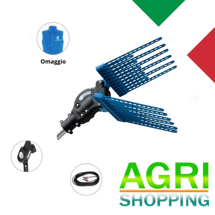 Elektra è una testa di raccolta indicata per alberi con chiome potate e poco folte. I rastrelli “pettinano” i rami con moto alternato e possono ospitare fino ad un totale di 22 rebbi intercambiabili, realizzati in resina termoplastica per garantire robustezza e flessibilità e per ottimizzare lo scorrimento all’interno dei rami. Elektra è stata studiata per ottenere la massima leggerezza (pesa poco più di un chilogrammo) grazie alla sua particolare forma e ai suoi rebbi estremamente sottili. Il guscio esterno della parte meccanica è stato concepito per non permettere nessuna intromissione di corpi estranei.