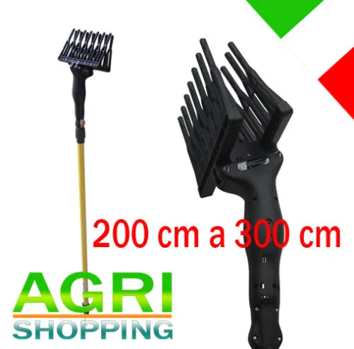 astine del pettine di raggiungere i rami per la raccolta delle olive. L’asta telescopica ha un ingranaggio di blocco.