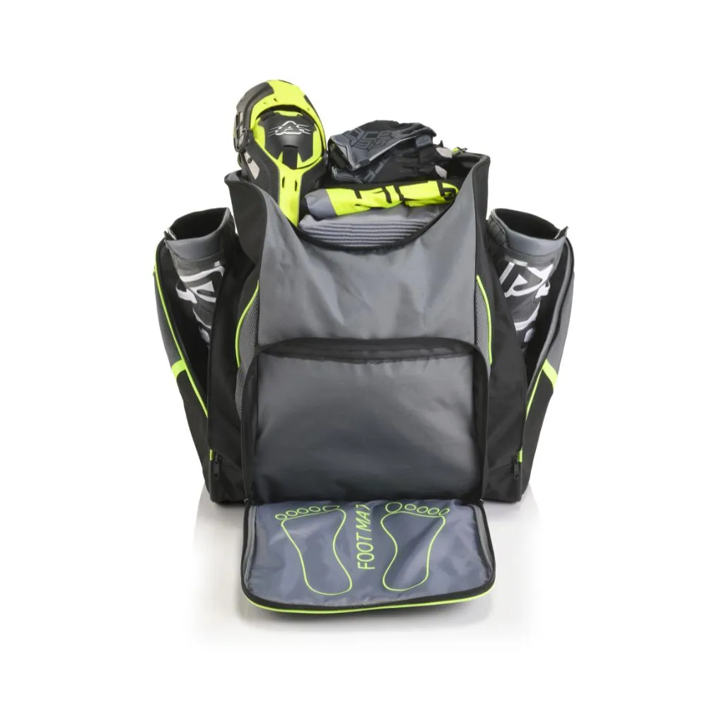 Lo Zaino-borsa accoglie tutta l’attrezzatura specifica per sportivi che praticano discipline con moto offroad: motocross/Enduro/trial/motard . Grazie al design a zaino si può trasportare tutta l’attrezzatura necessaria, su e giù dalle scale o nei paddock in presenza di terreni accidentati