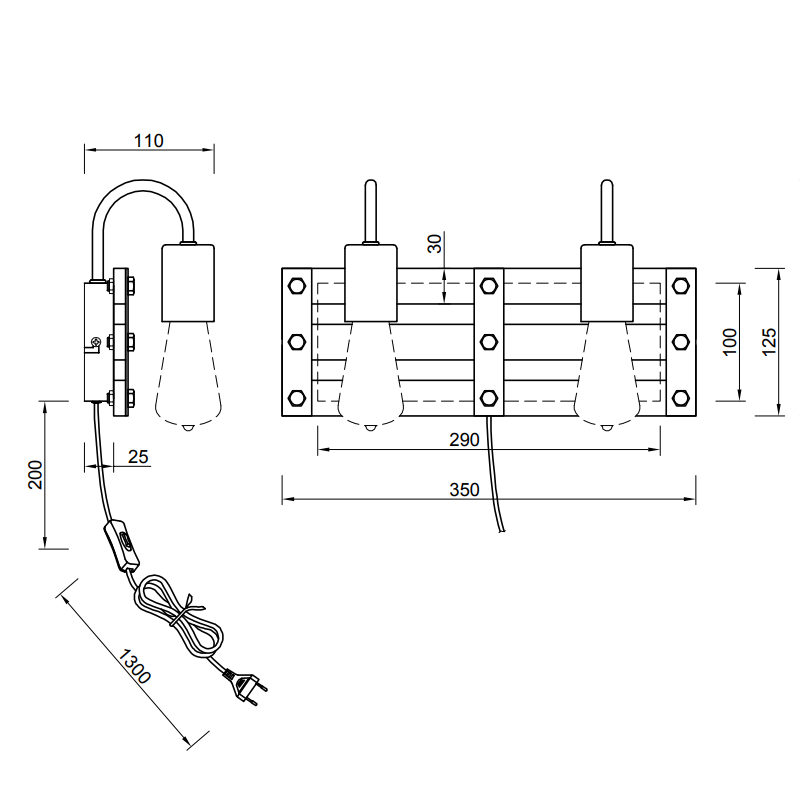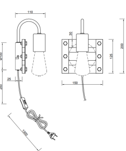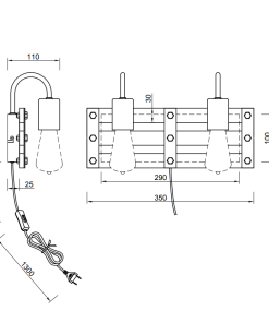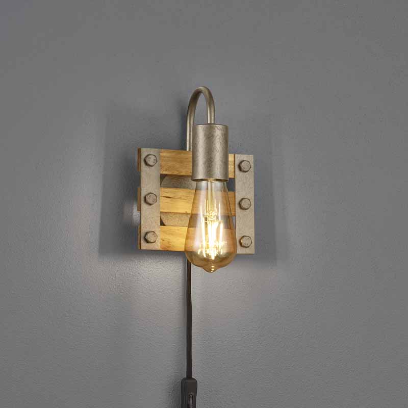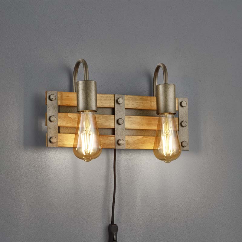 Applique Led Khan in legno e metallo anticato da due/uno punti luce E27- Trio Lighting