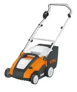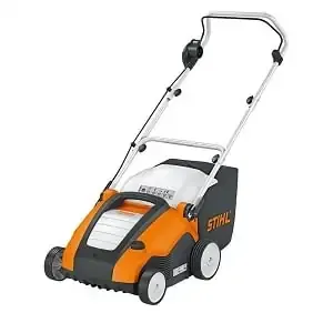 Arieggiatore elettrico compatto per arieggiare e sfeltrare superfici piccole. Larghezza di lavoro 34 cm, 20 lame. Rullo con lame e cesto di raccolta erba inclusi.
