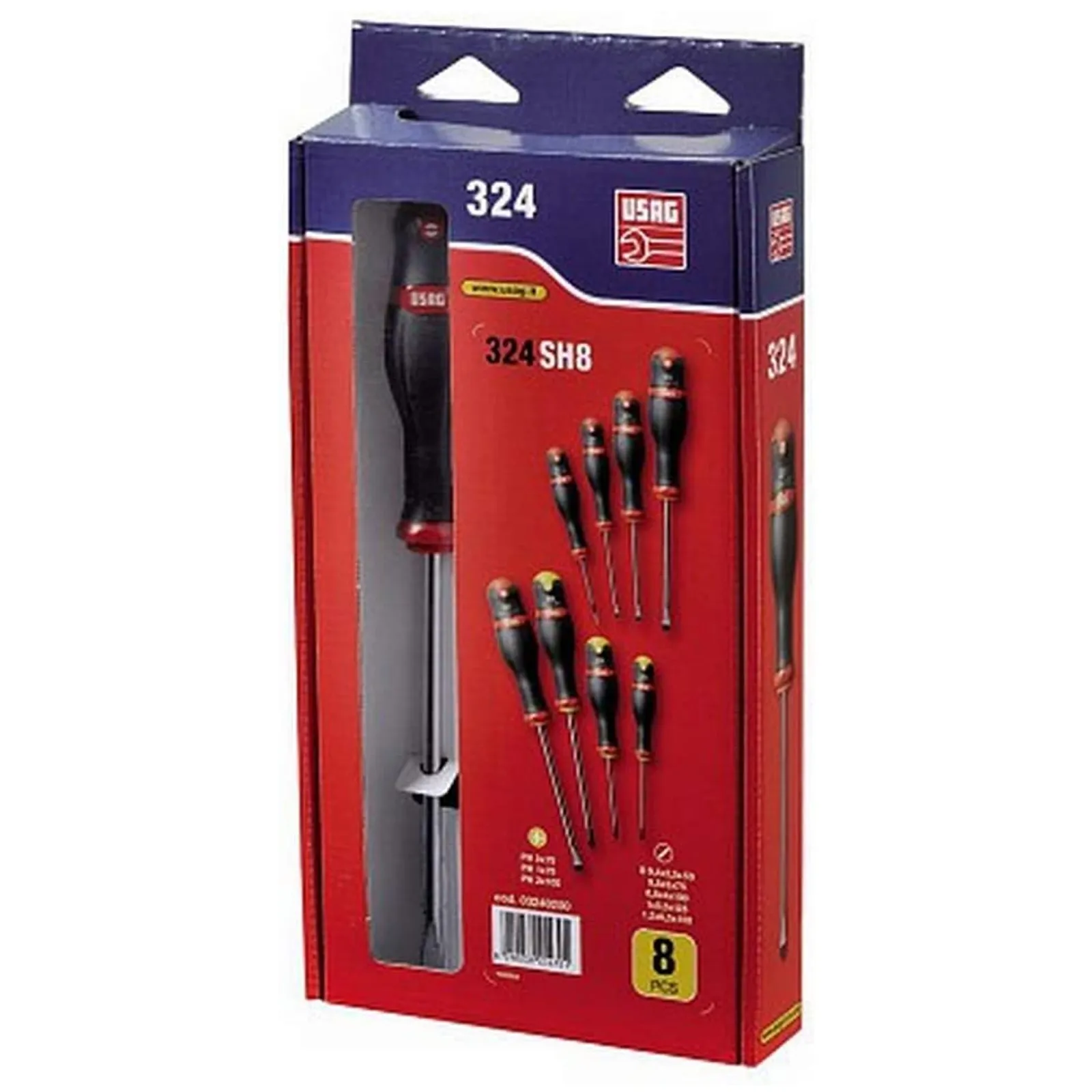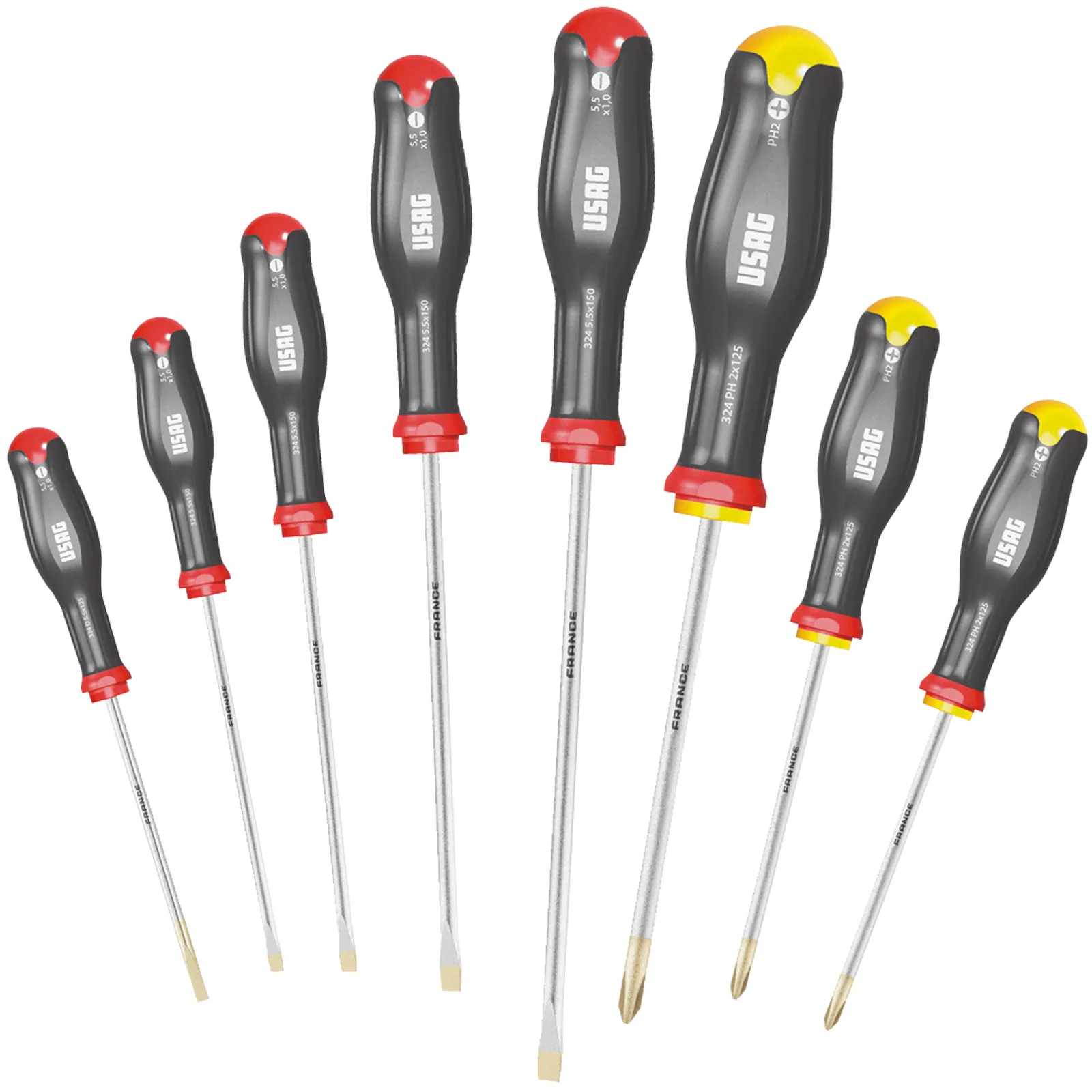 Serie di 8 cacciaviti per viti con intaglio e impronta a croce Phillips.