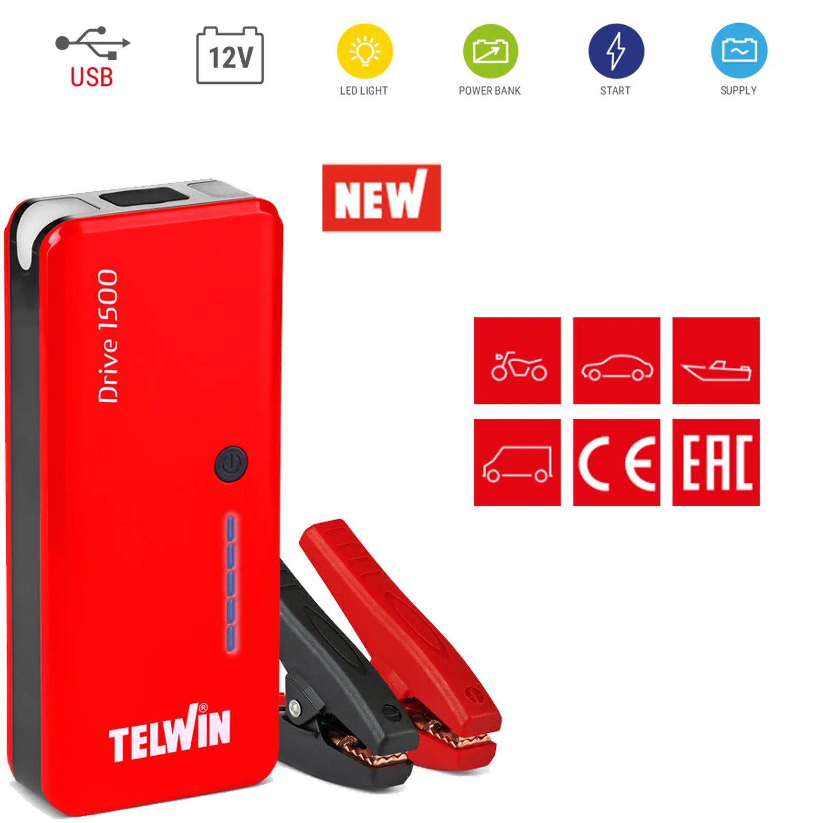 - avviatore di emergenza a 12V ultracompatto;
