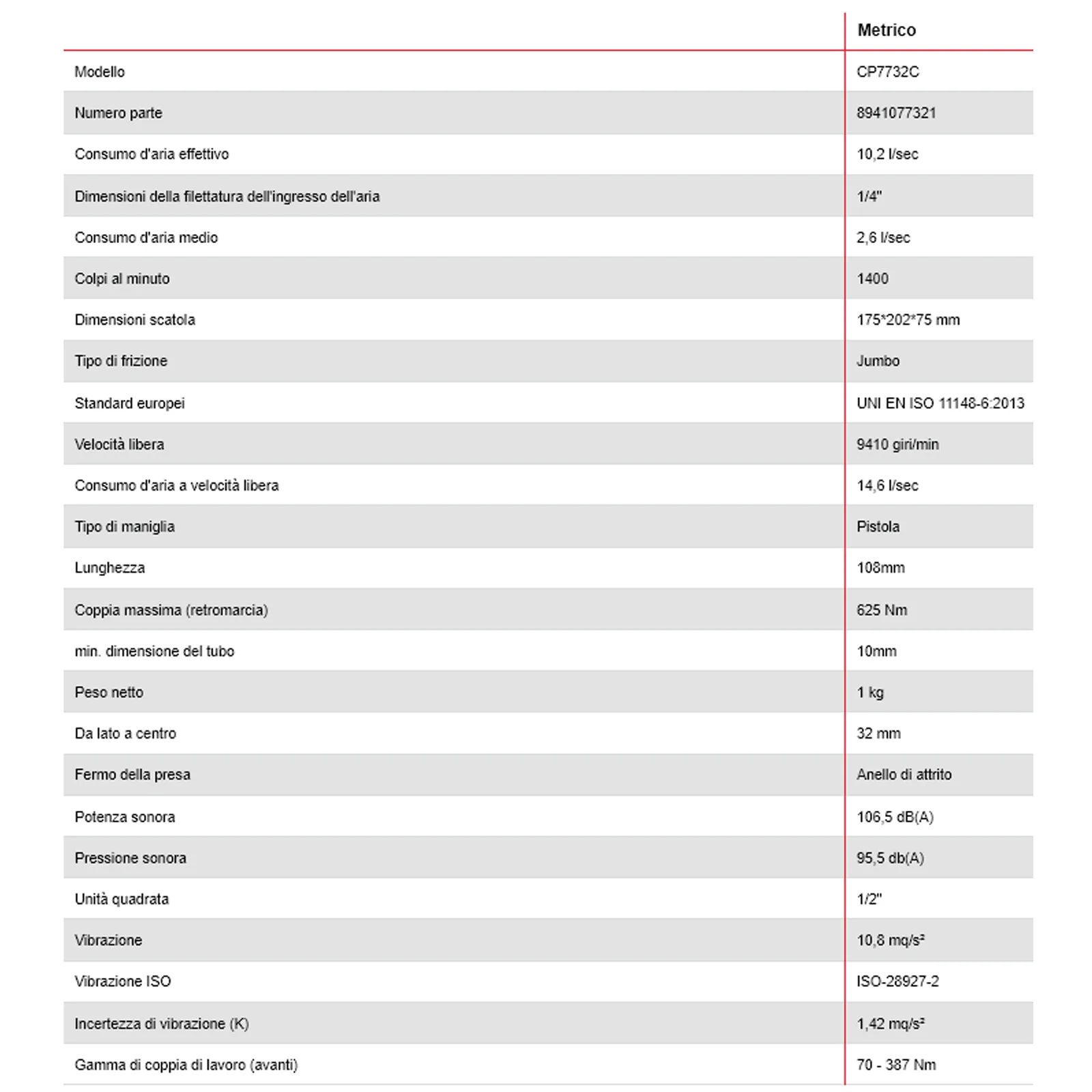 Avvitatore a Impulsi 1/2″ Pneumatico CHICAGO PNEUMATIC Ultra Compatto a Massa Battente ad Impatto Reversibile CP7732C
