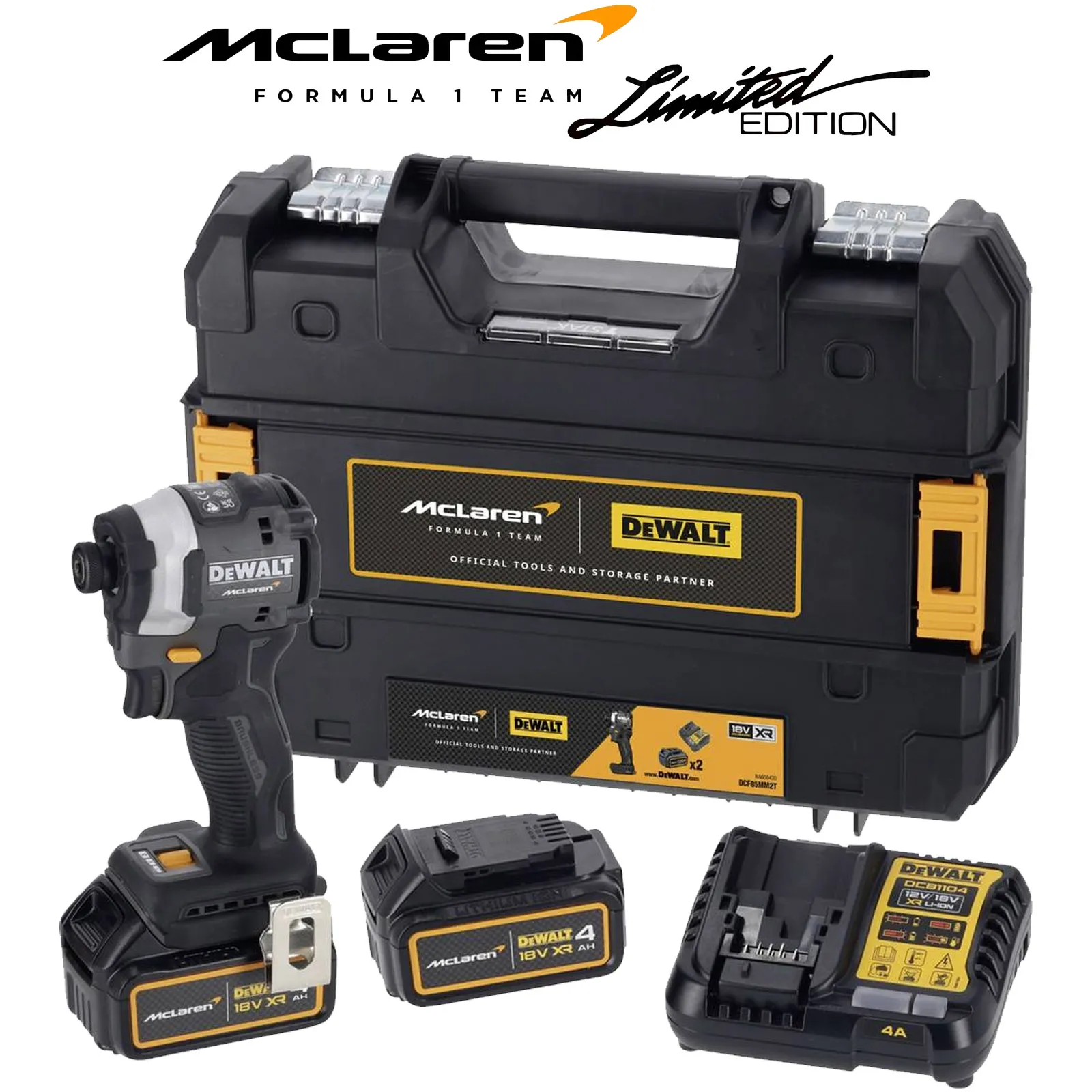 Questo modello nasce dalla collaborazione tra DEWALT e il prestigioso team di Formula 1 McLaren, unendo la tecnologia avanzata degli utensili professionali alla filosofia delle alte prestazioni tipica del motorsport.