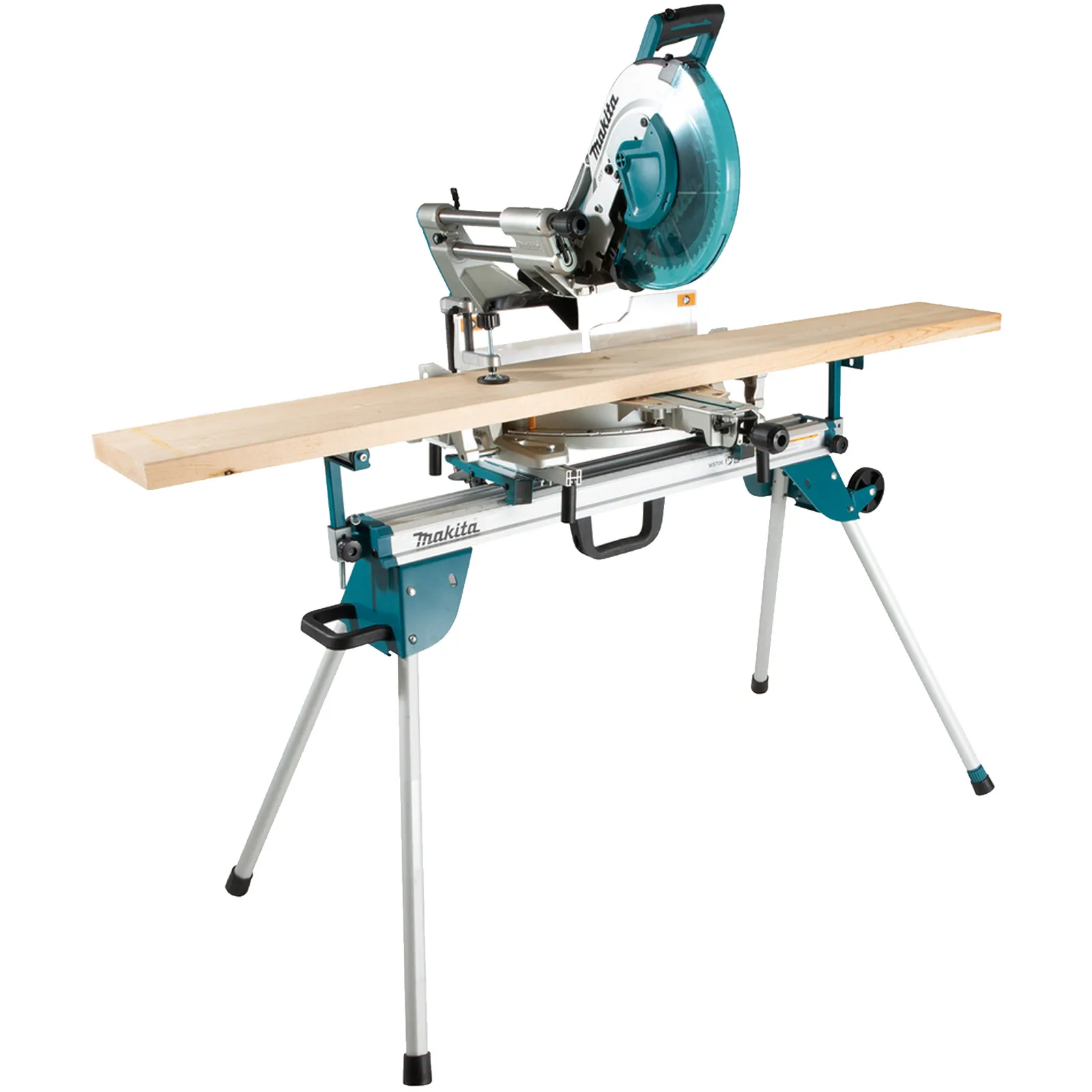 Il DEBWST06 Makita è un leggero banco per sega da banco in alluminio per una facile trasportabilità in cantiere