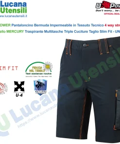 Bermuda in tessuto U-4 (U-Power 4 way stretch) molto comodo, resistente, morbido sulla pelle, idrorepellente, traspirante e asciuga rapidamente.