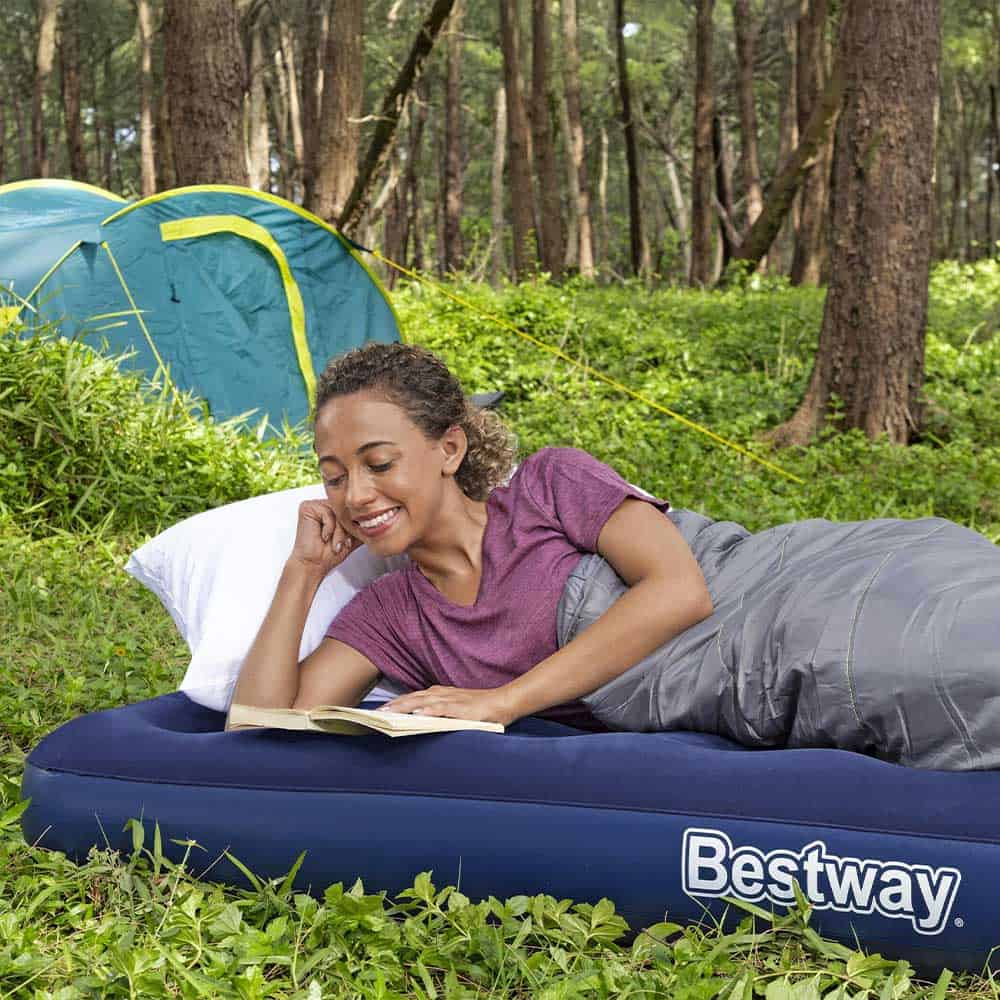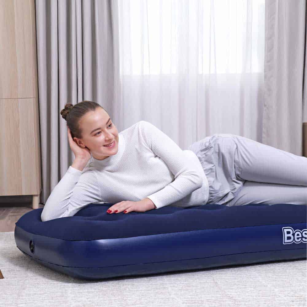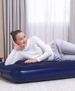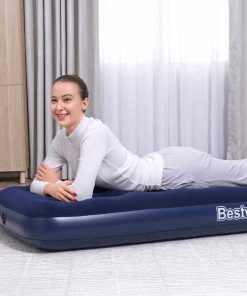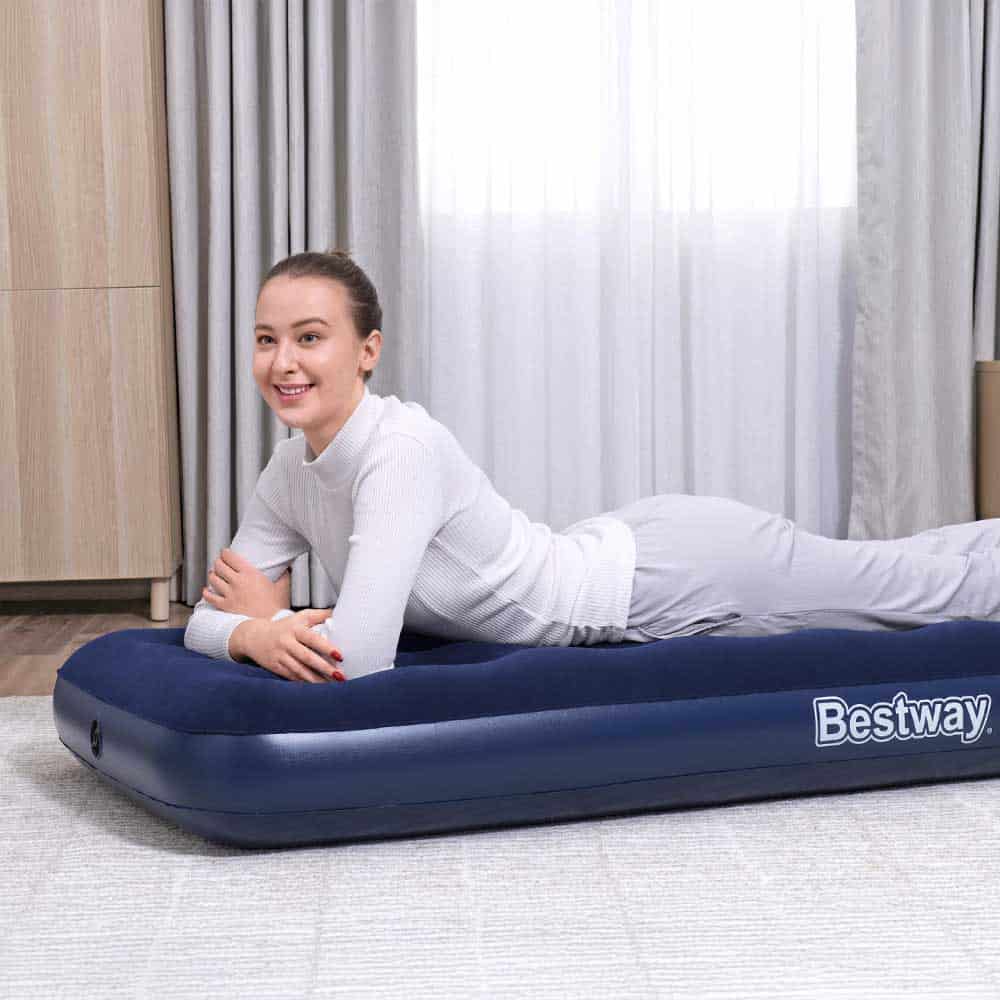 Il materasso gonfiabile Bestway® progettato per l’uso in casa e all’aperto è perfetto per il campeggio come per la stanza degli ospiti! Questo materasso singolo (modello twin junior) si gonfia e si sgonfia rapidamente, ed è tanto pratico quanto confortevole.