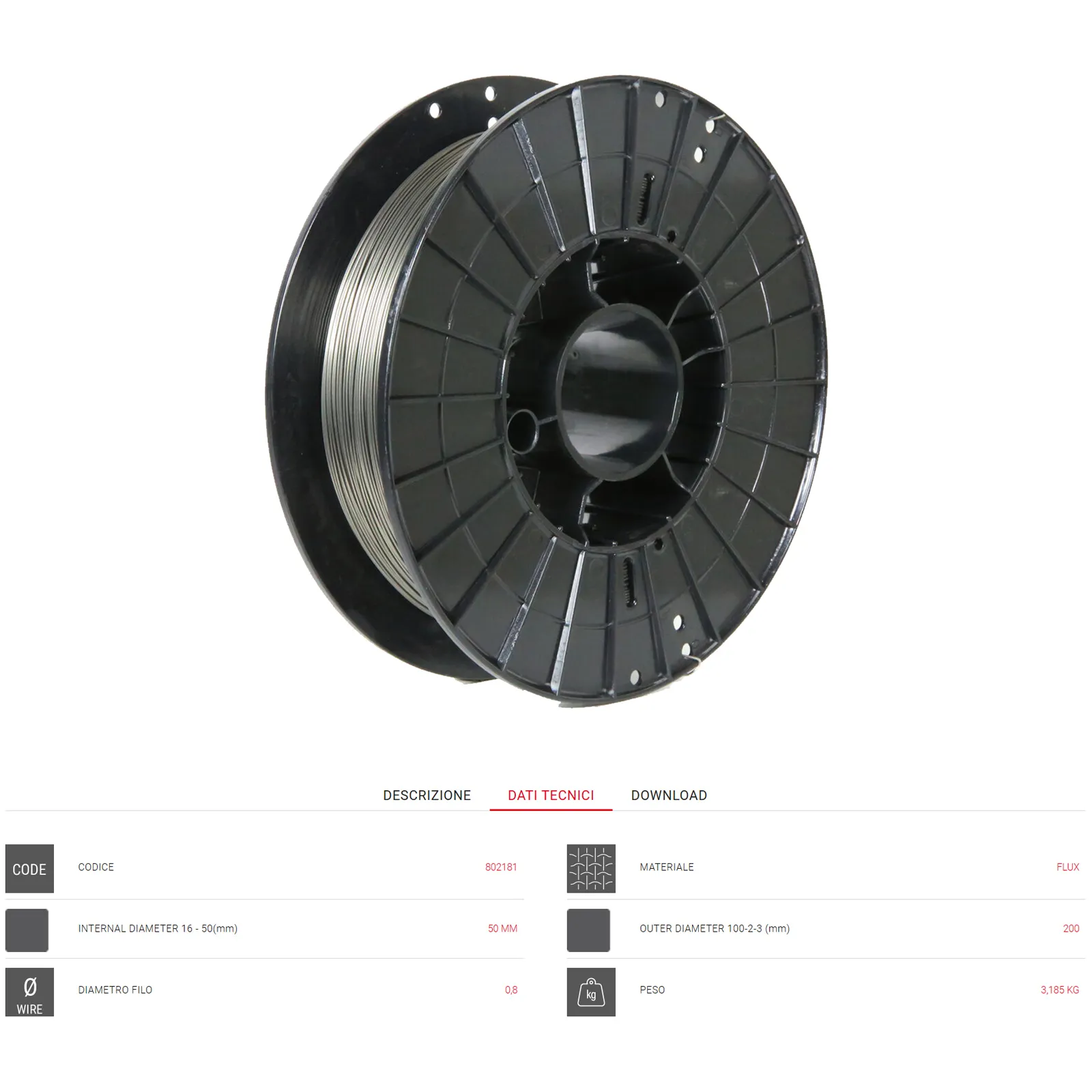 Diametri disponibili: 0,8 mm – 0,9 mm – 1,2 mmAWS A5.20; E71T-GS