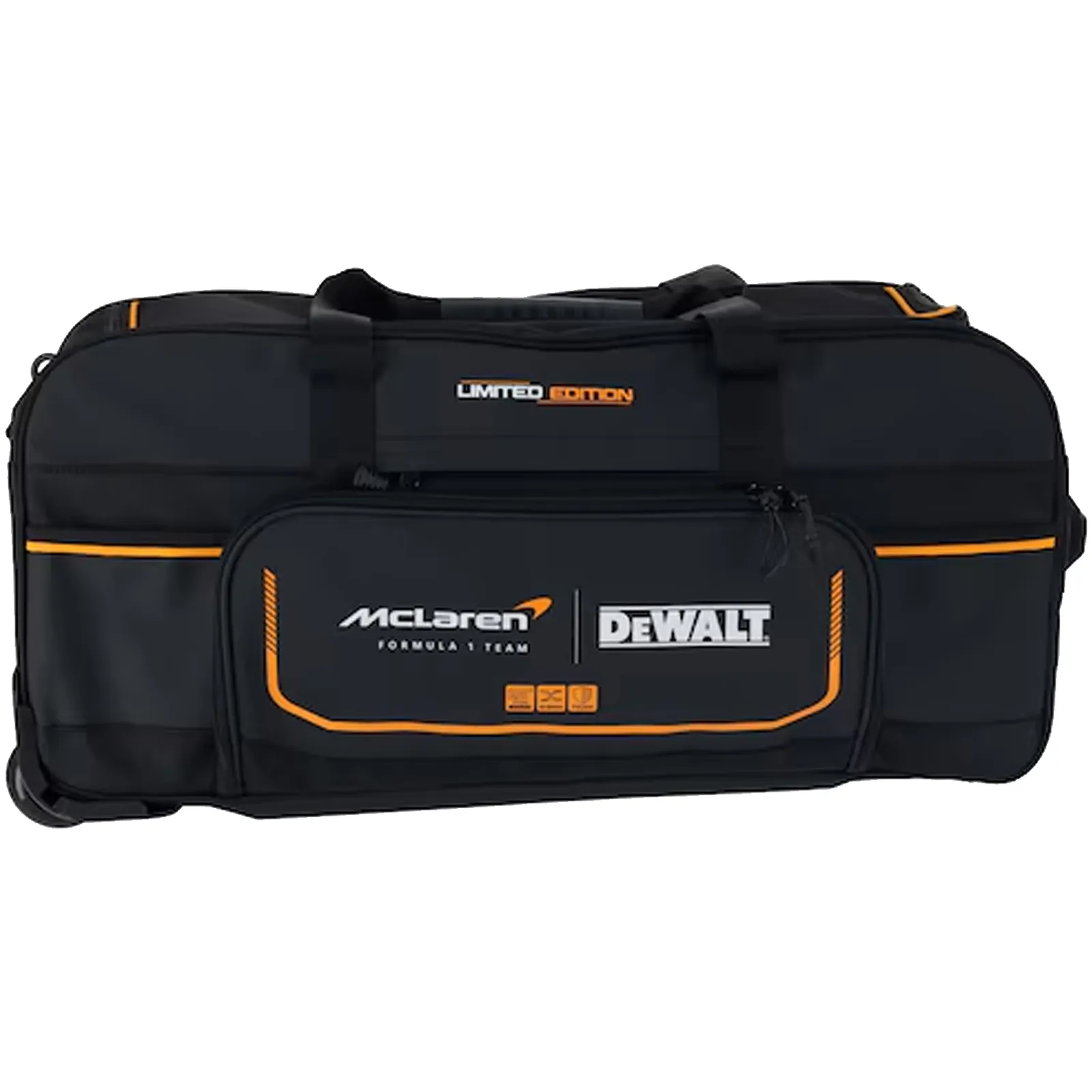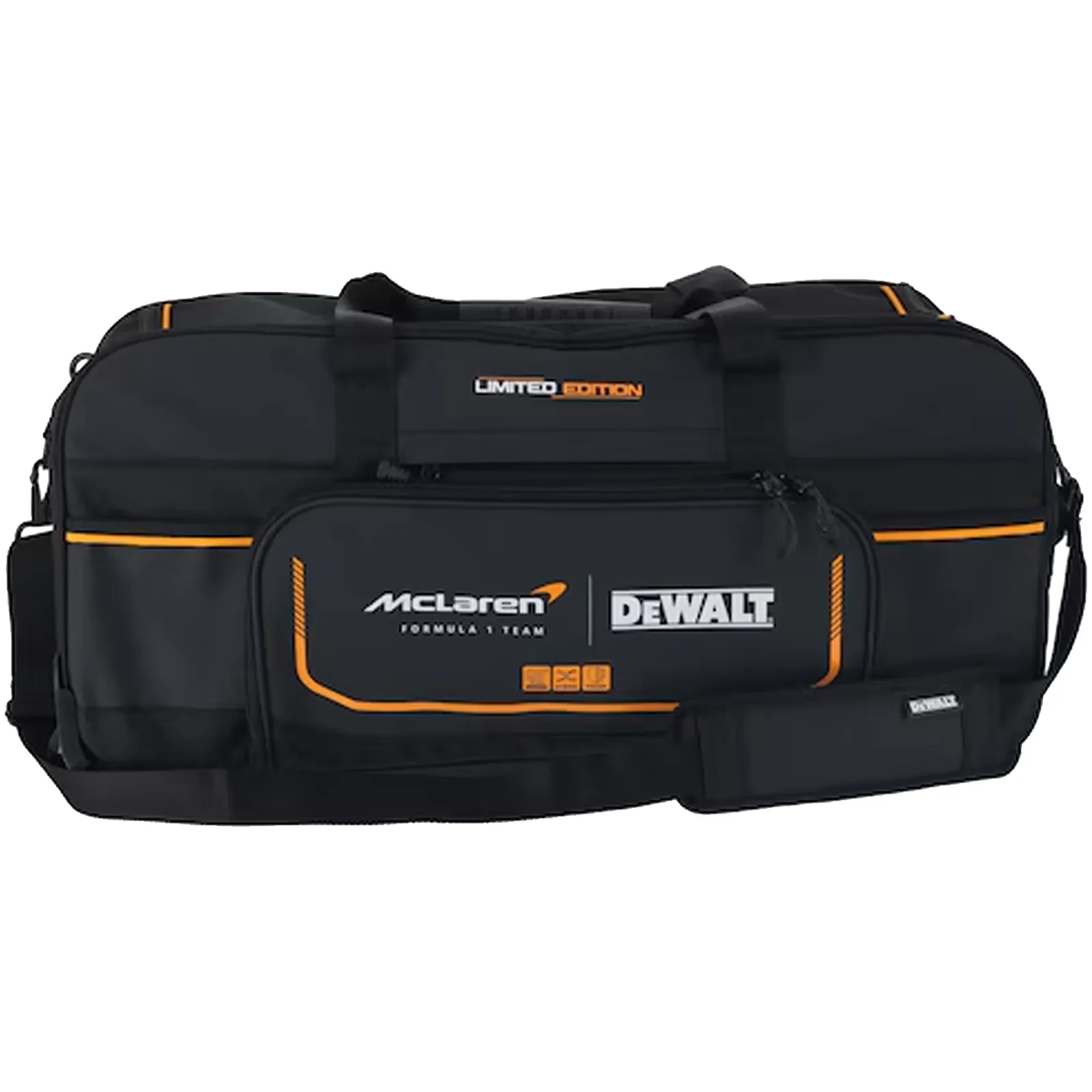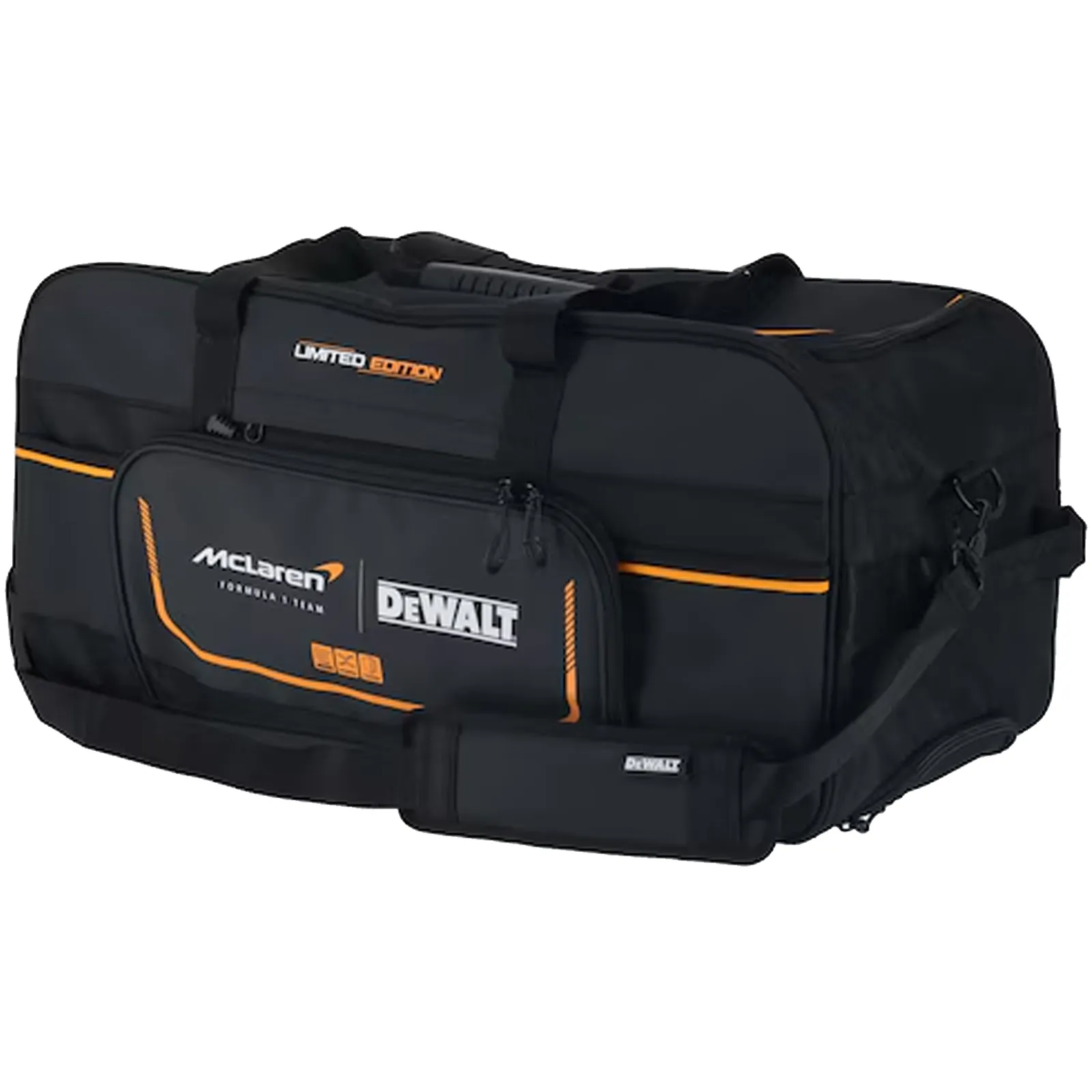 Nato dalla prestigiosa collaborazione tra DeWalt e il team di Formula 1 McLaren, questo borsone combina la massima qualità dei materiali con un design ispirato alle alte prestazioni del motorsport.
