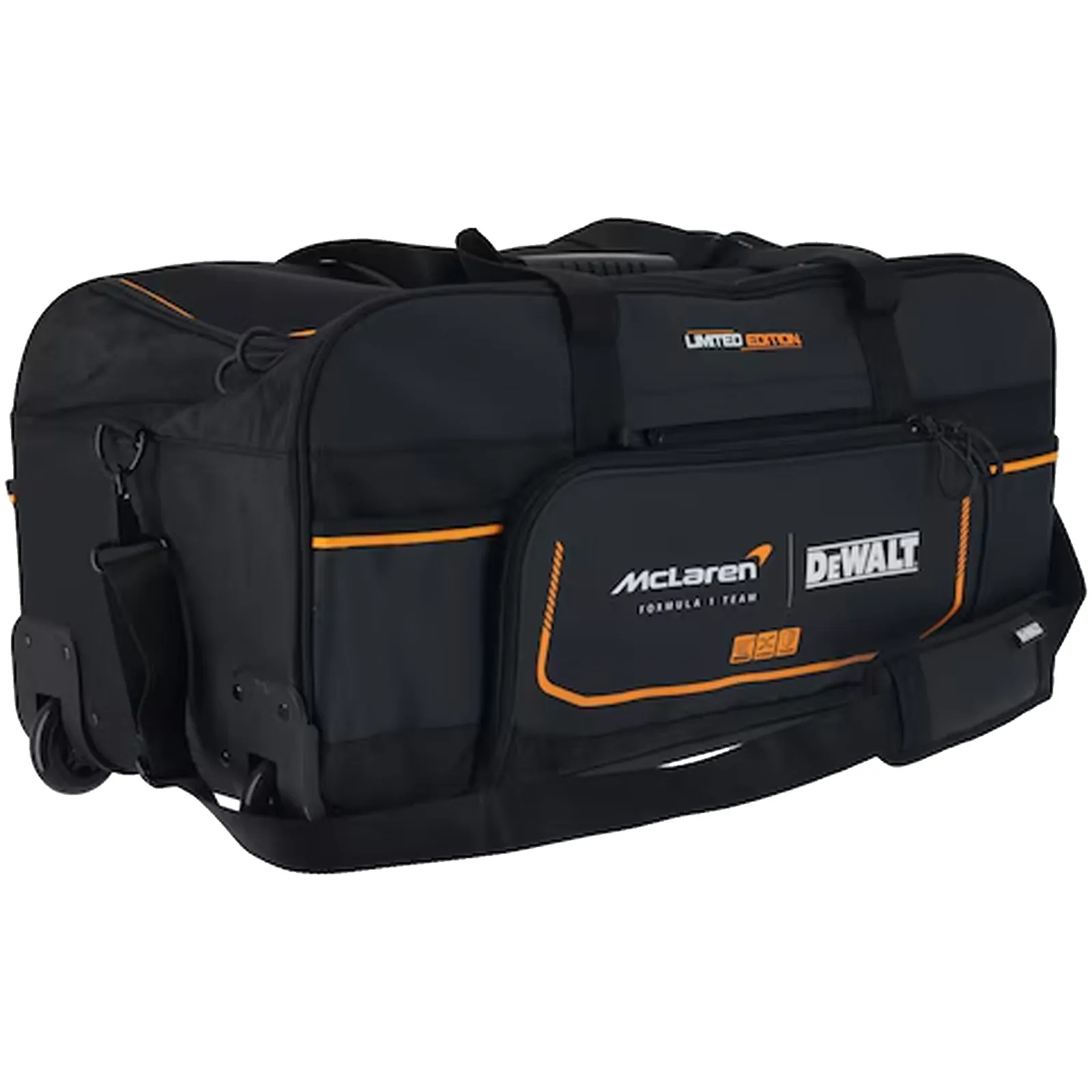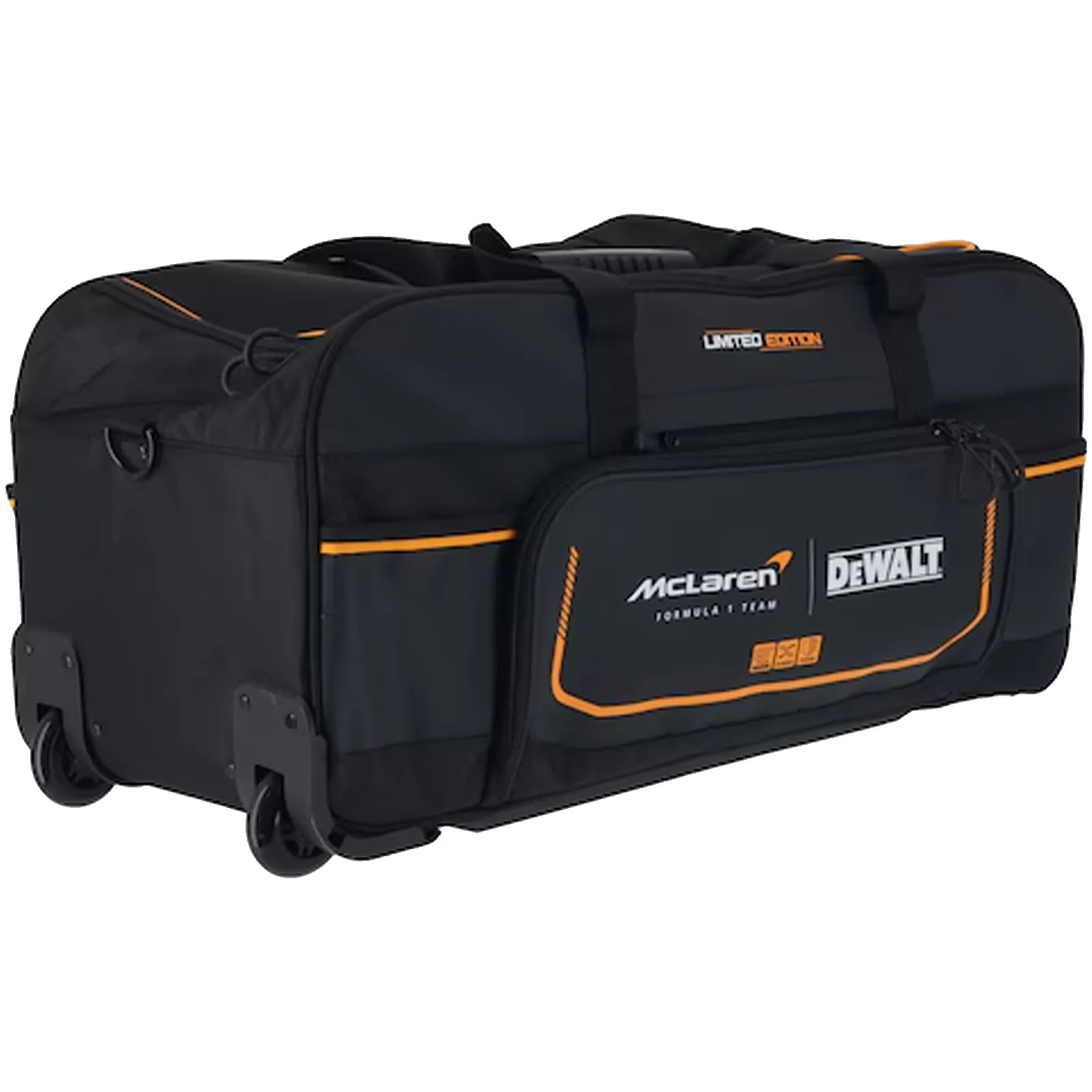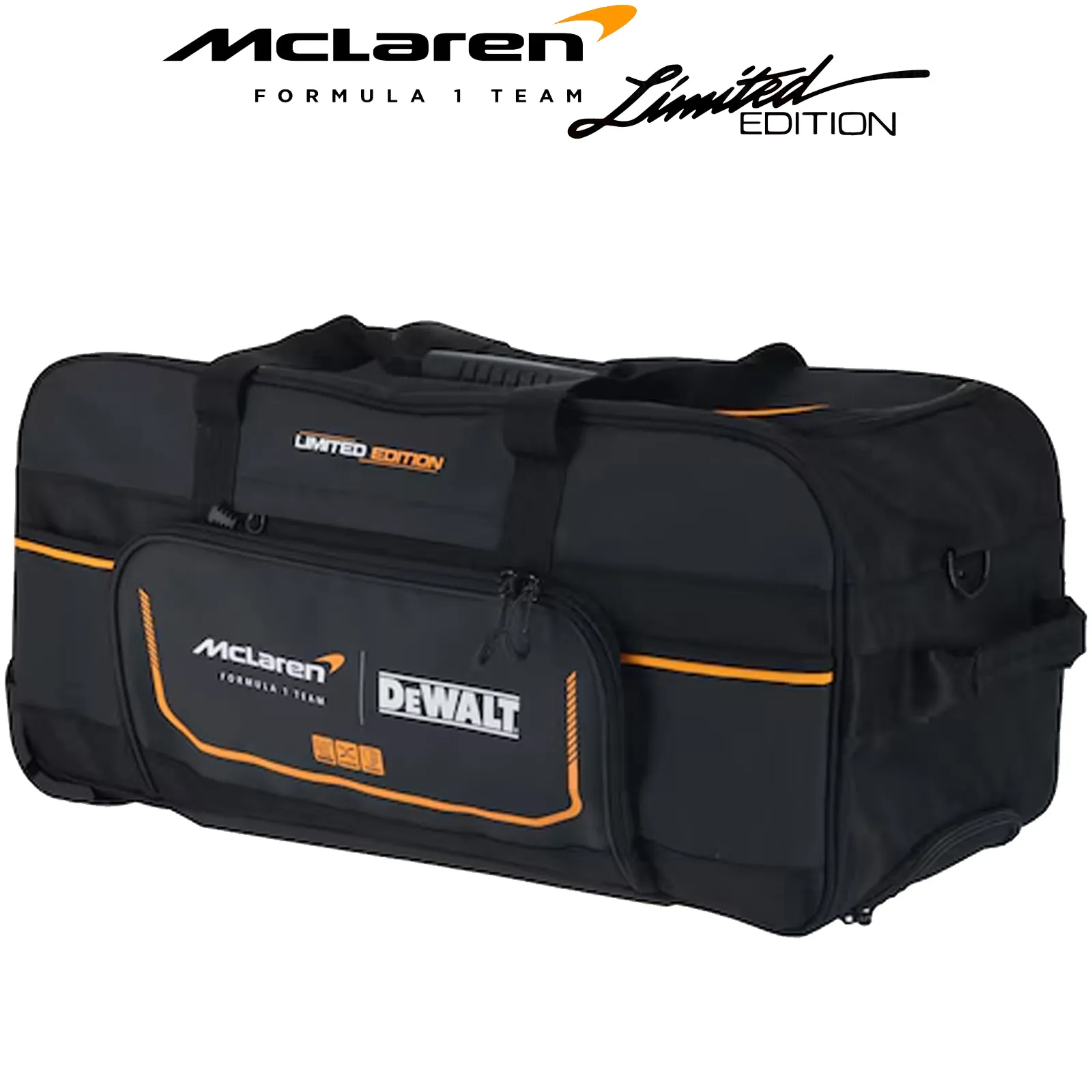 Nato dalla prestigiosa collaborazione tra DeWalt e il team di Formula 1 McLaren, questo borsone combina la massima qualità dei materiali con un design ispirato alle alte prestazioni del motorsport.