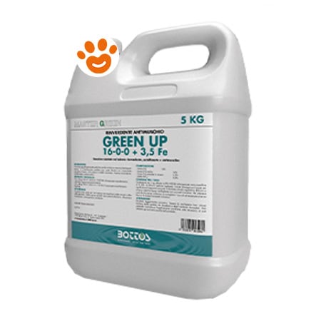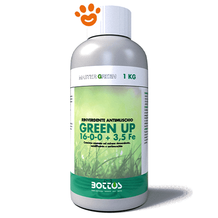 Green Up di Bottos è un concime rinverdente e biostimolante a base di azoto e solfato di ferro. La componente immediatamente disponibile di Ferro risulta utile nell’eliminazione e controllo del muschio. Green Up ha un’azione rinverdente ed acidificante immediata. Può esser usato per evitare le decolorazioni ed ingiallimenti del prato dovute a trattamenti diserbanti contro le infestanti. Green Up aumenta la produzione di clorofilla.