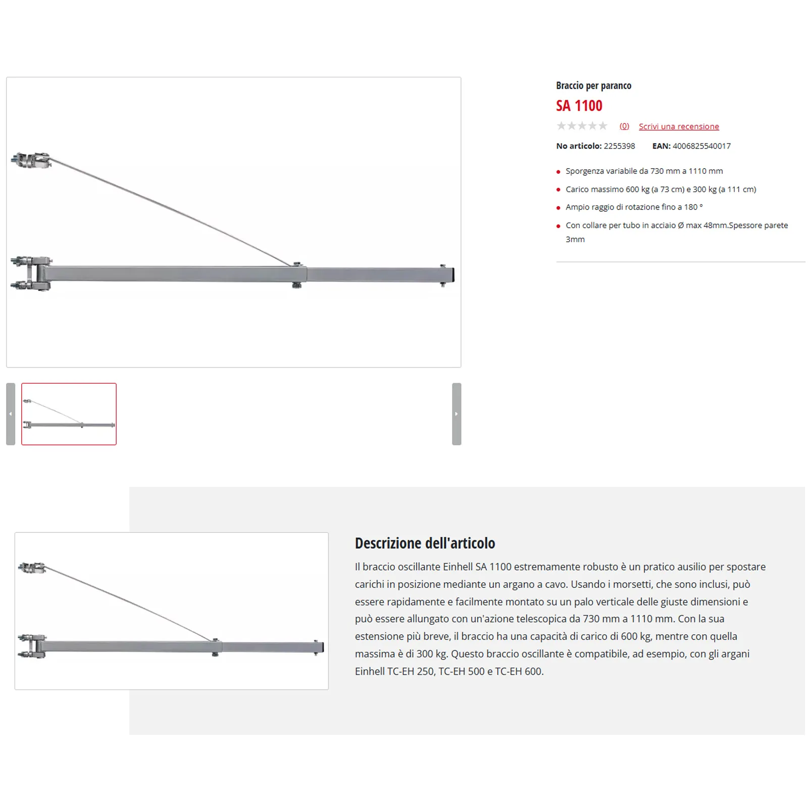 Il Braccio Orientabile Einhell SA 1100 è la soluzione ideale per ottimizzare l’utilizzo del tuo paranco elettrico, trasformando operazioni di sollevamento complesse in attività semplici e sicure.