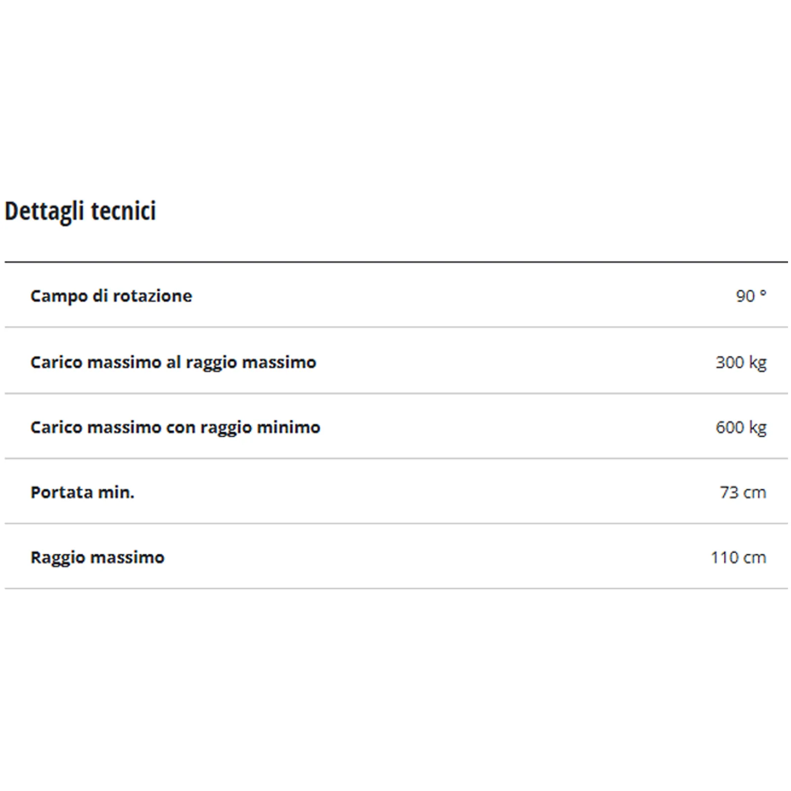 Questa flessibilità permette di adattare il braccio a diverse tipologie di carico, garantendo sempre la massima sicurezza.