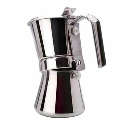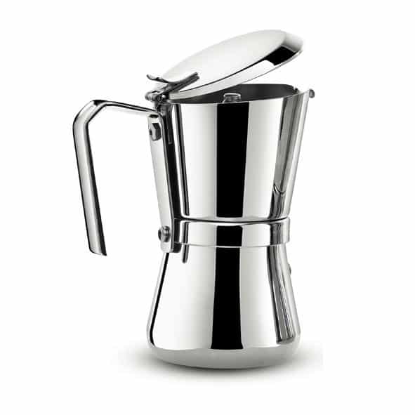 - Chiusura a scatto grazie alla rotazione del manico che si aggancia direttamente alla parte inferiore della caffettiera.