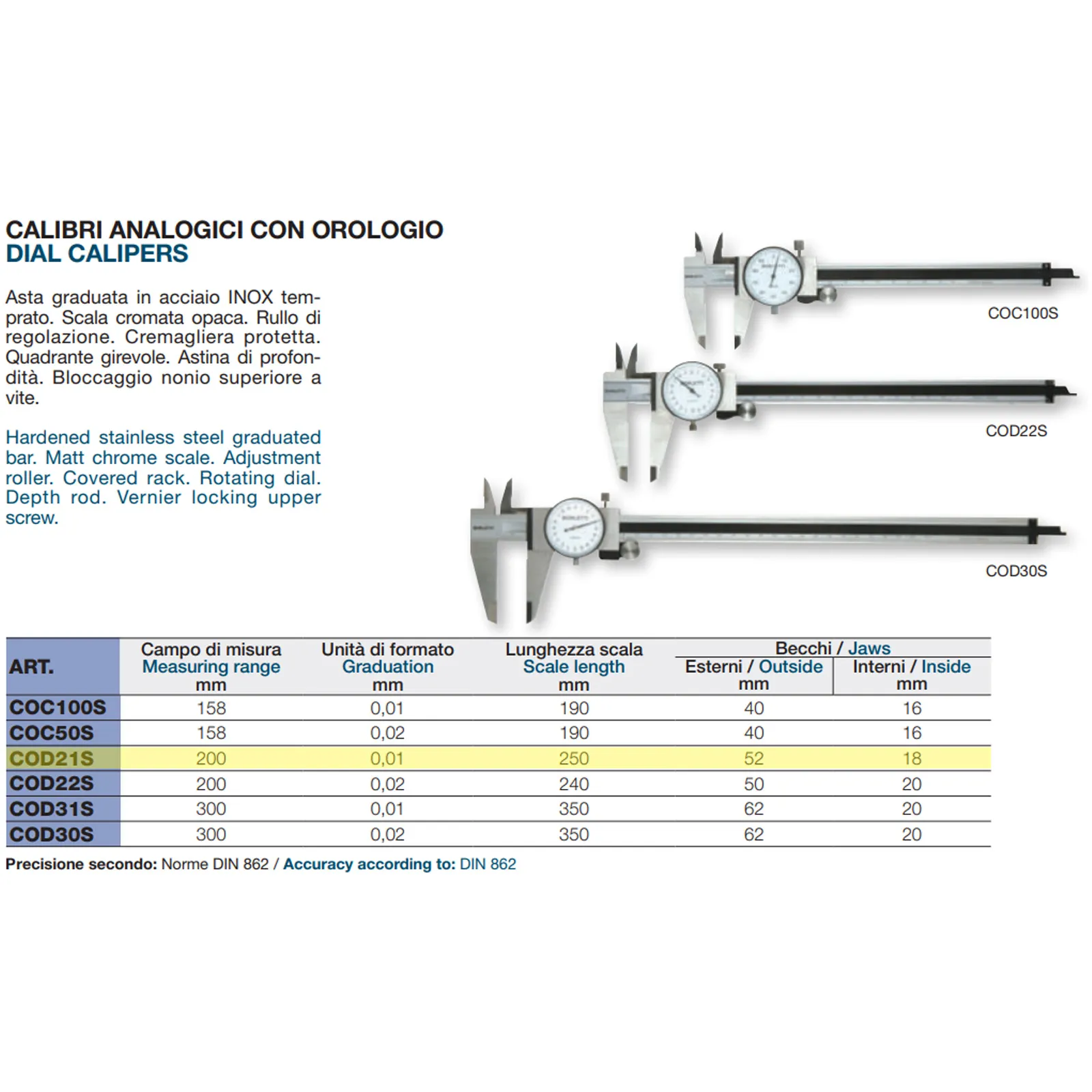 Bloccaggio nonio superiore a vite.