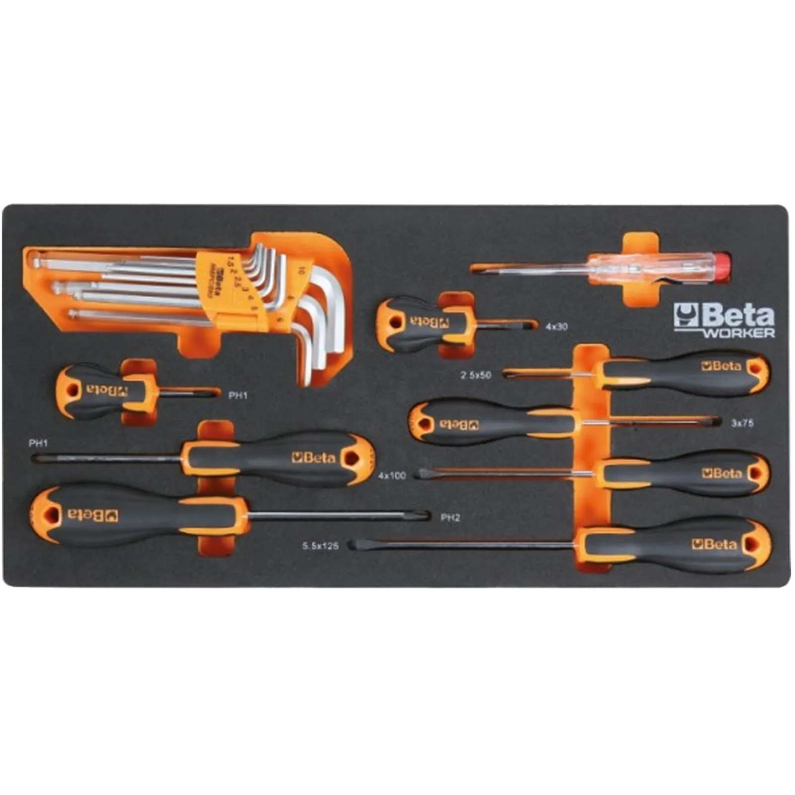 Se vuoi un set completo e subito operativo, puoi optare per la versione fornita di 159 utensili e accessori. Questa configurazione comprende una selezione di strumenti professionali Beta, perfetti per lavori di manutenzione, meccanica, falegnameria e molto altro.