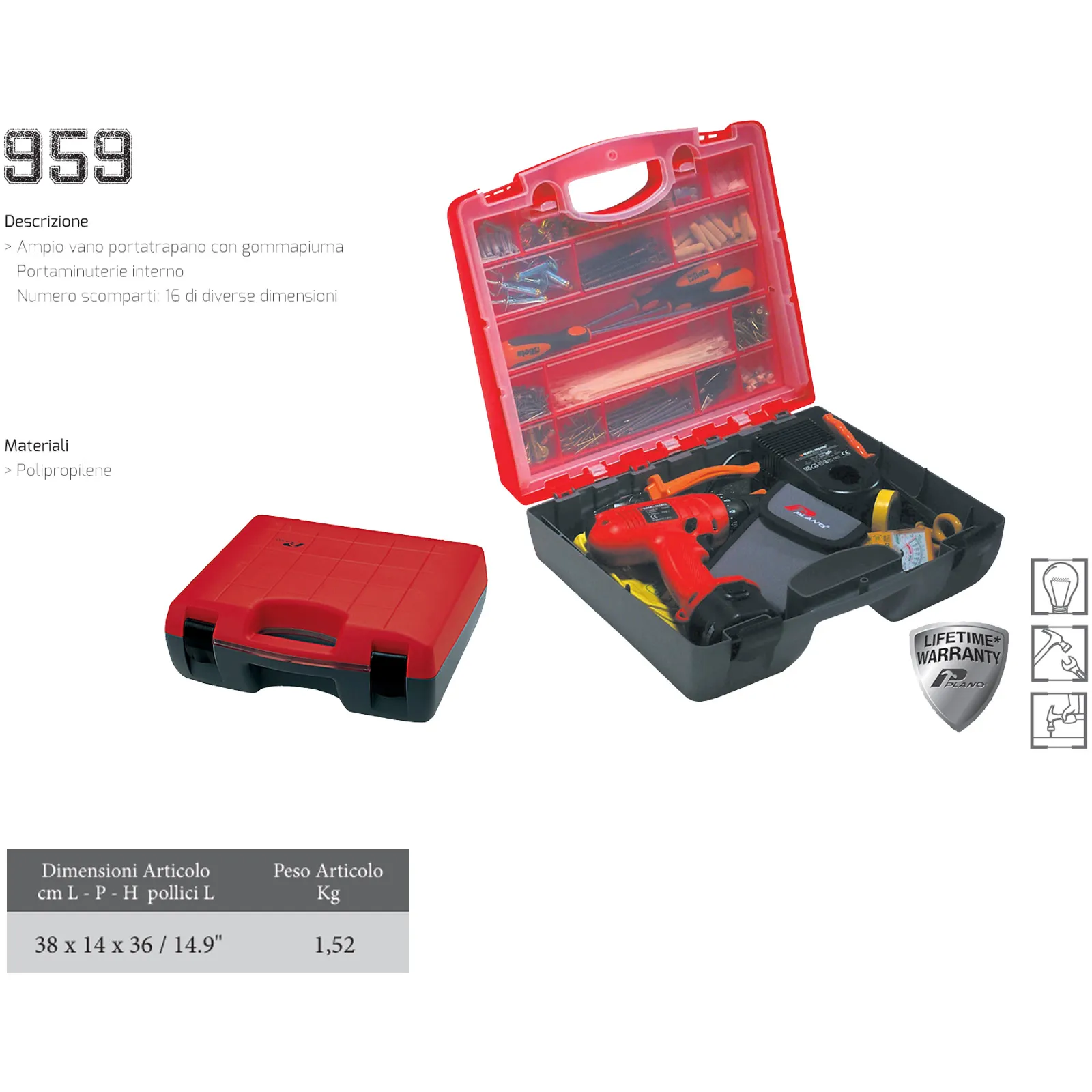 Ampio vano porta trapano ed altri utensili con gommapiuma venduta VUOTA