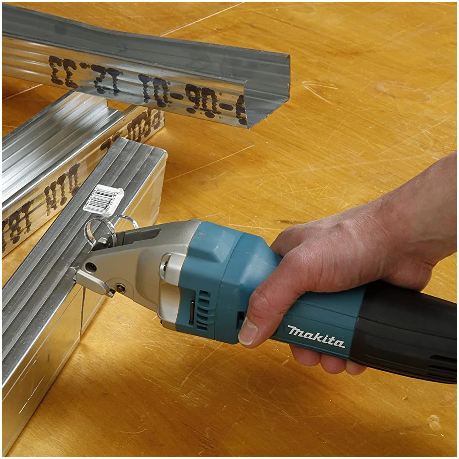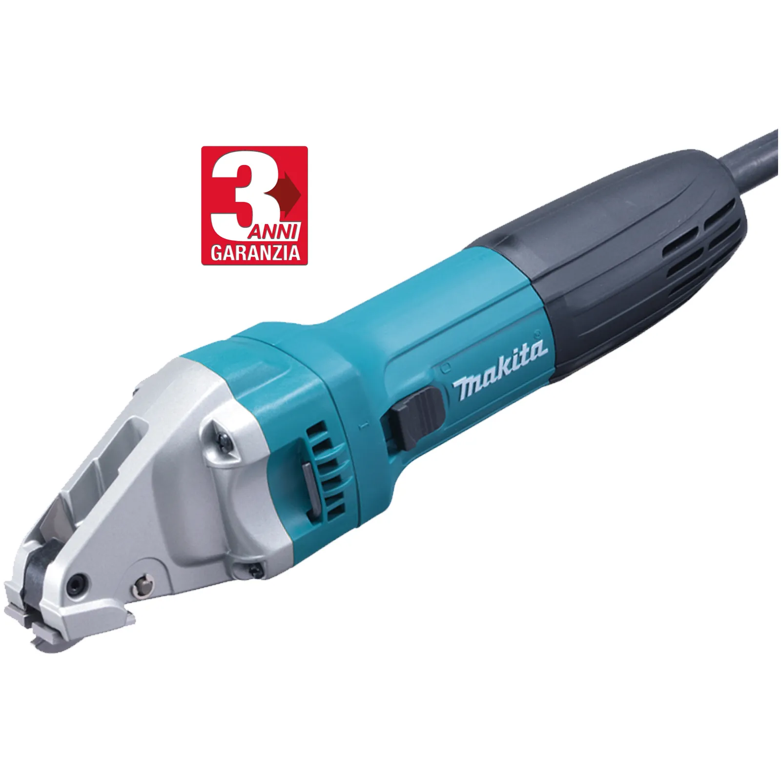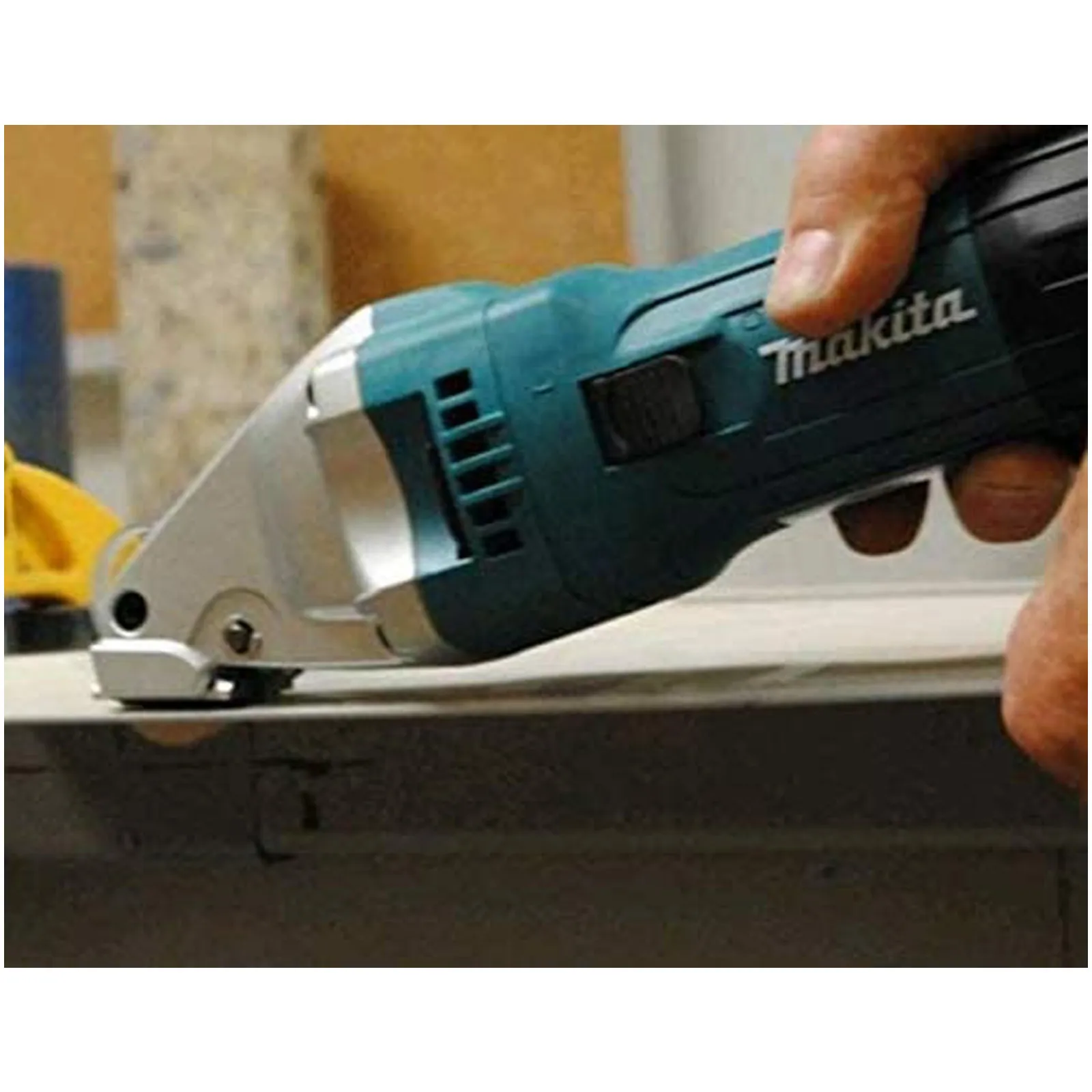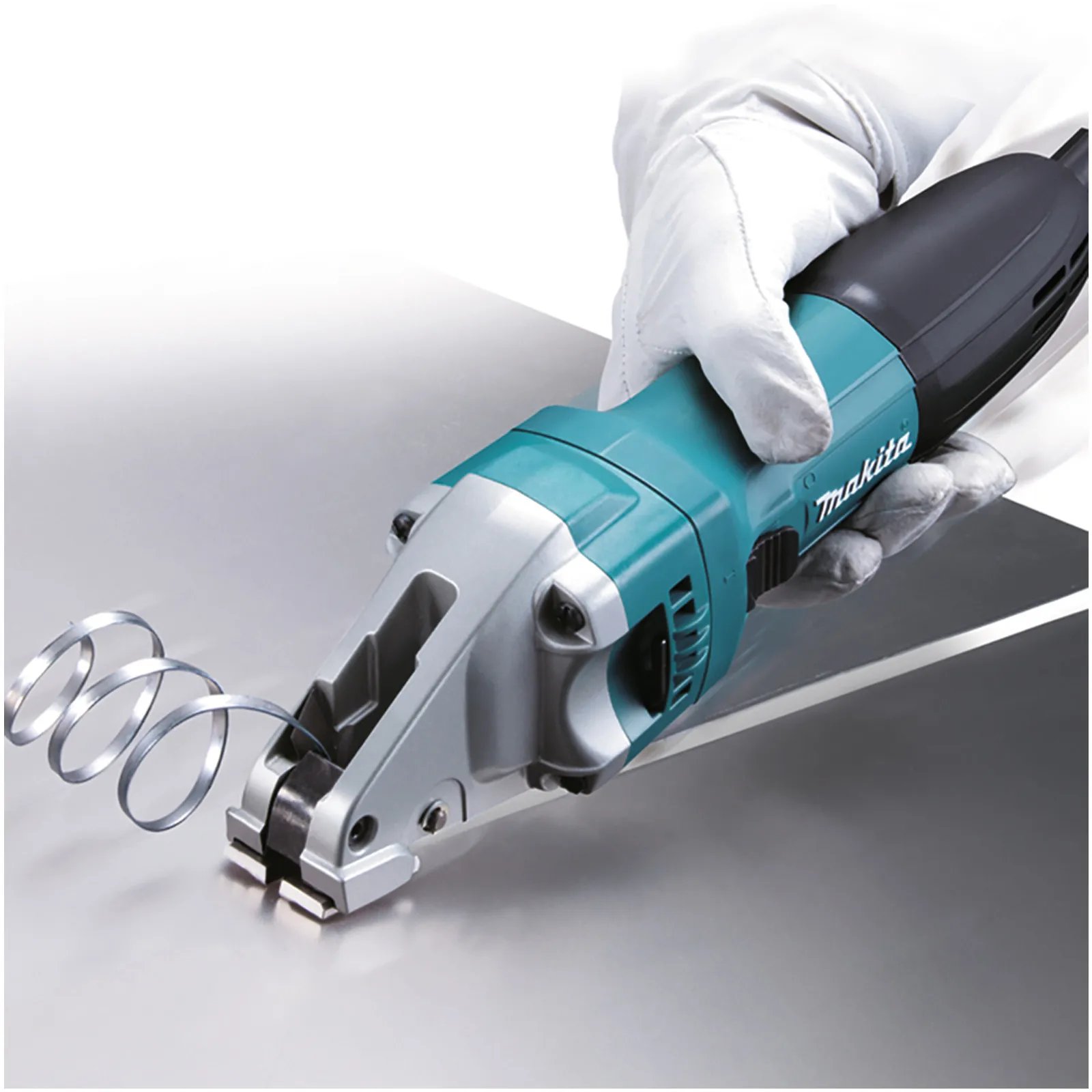La cesoia professionale Makita JS1601J è la cesoia per tagli dritti e curvi con un raggio di 250 mm che è in grado di tagliare una striscia con bordo netto dal centro.