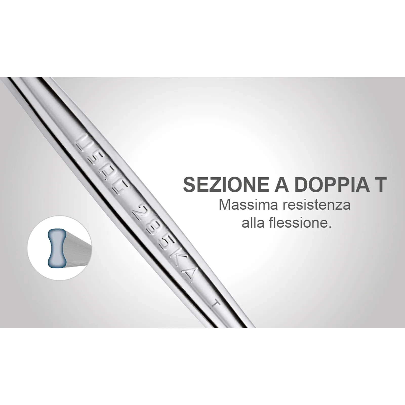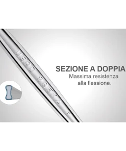 La testa poligonale e a forchetta inclinate di 15° con angolo di ripresa di 5°.