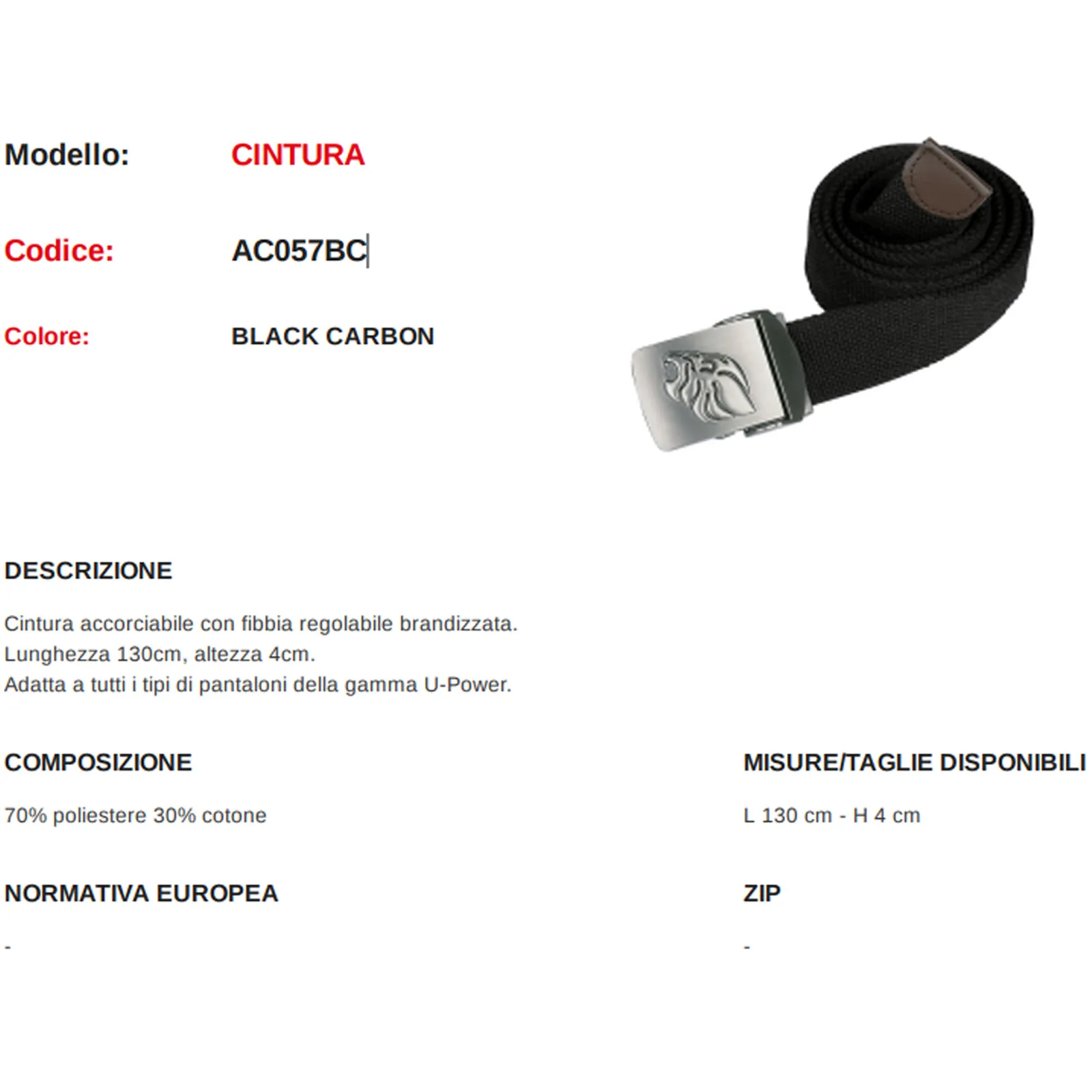 Cintura accorciabile con fibbia regolabile brandizzata.