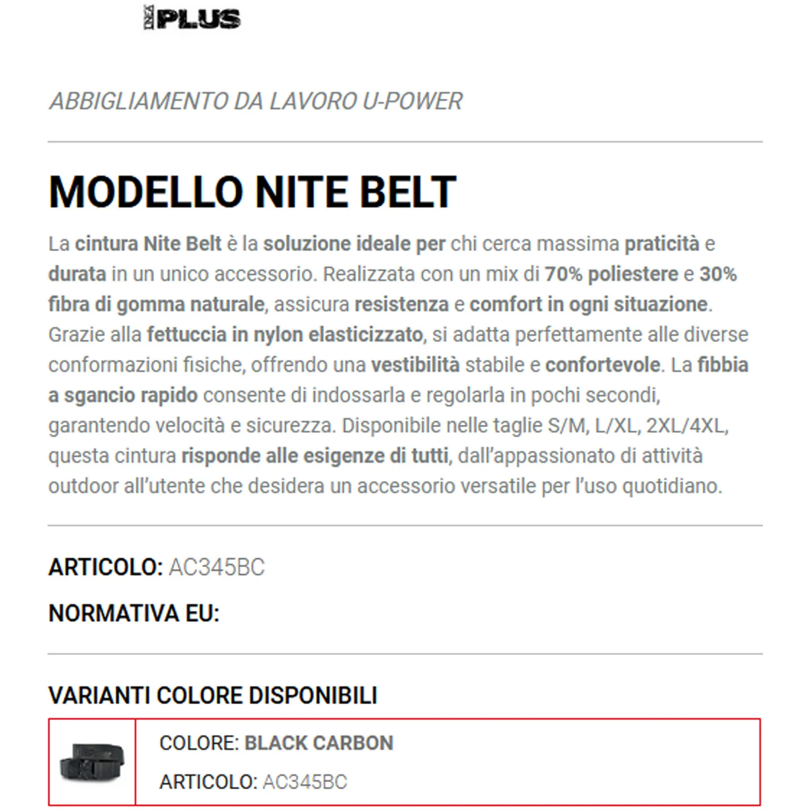 Disponibile in 3 diverse taglie (S/M, L/XL, 2XL/4XL), la NITE BELT si adatta perfettamente alle esigenze di ogni utente, offrendo un design ergonomico che facilita il lavoro e riduce la fatica.