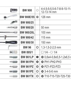 13 Chiavi a bussola esagonali 1/4″ modello BW 900: 4 – 4,5 – 5 – 5,5 – 6 – 7 – 8 – 9 – 10 – 11 – 12 – 13 – 14 mm