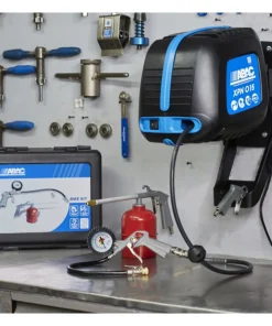 Il corpo montato a parete del Compressore d’aria ABAC XPN O15 contiene un avvolgi tubo integralmente incluso con una pompa retrattile da 10m e kit staffaggio.