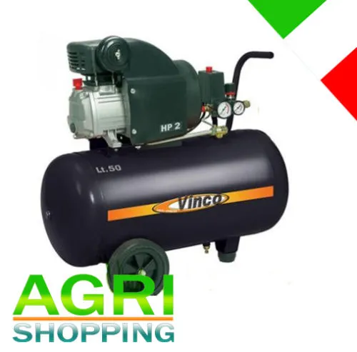 Compressore Aria 50 Litri Lubrificato 2 HP VINCO 60601 Con Motore 2 Hp, Potenza massima in uscita 1500W, Aria aspirata 195 L/min, Sebatoio: 50 litri