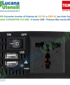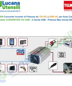 Collegato alla presa accendisigari del mezzo, converte la tensione a 12V della batteria a 230V.