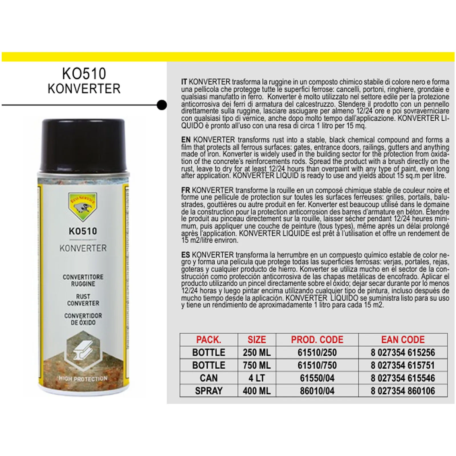 Scegliere il KO510 KONVERTER significa optare per un prodotto di alta qualità che garantisce risultati efficaci e duraturi nella lotta contro la ruggine.
