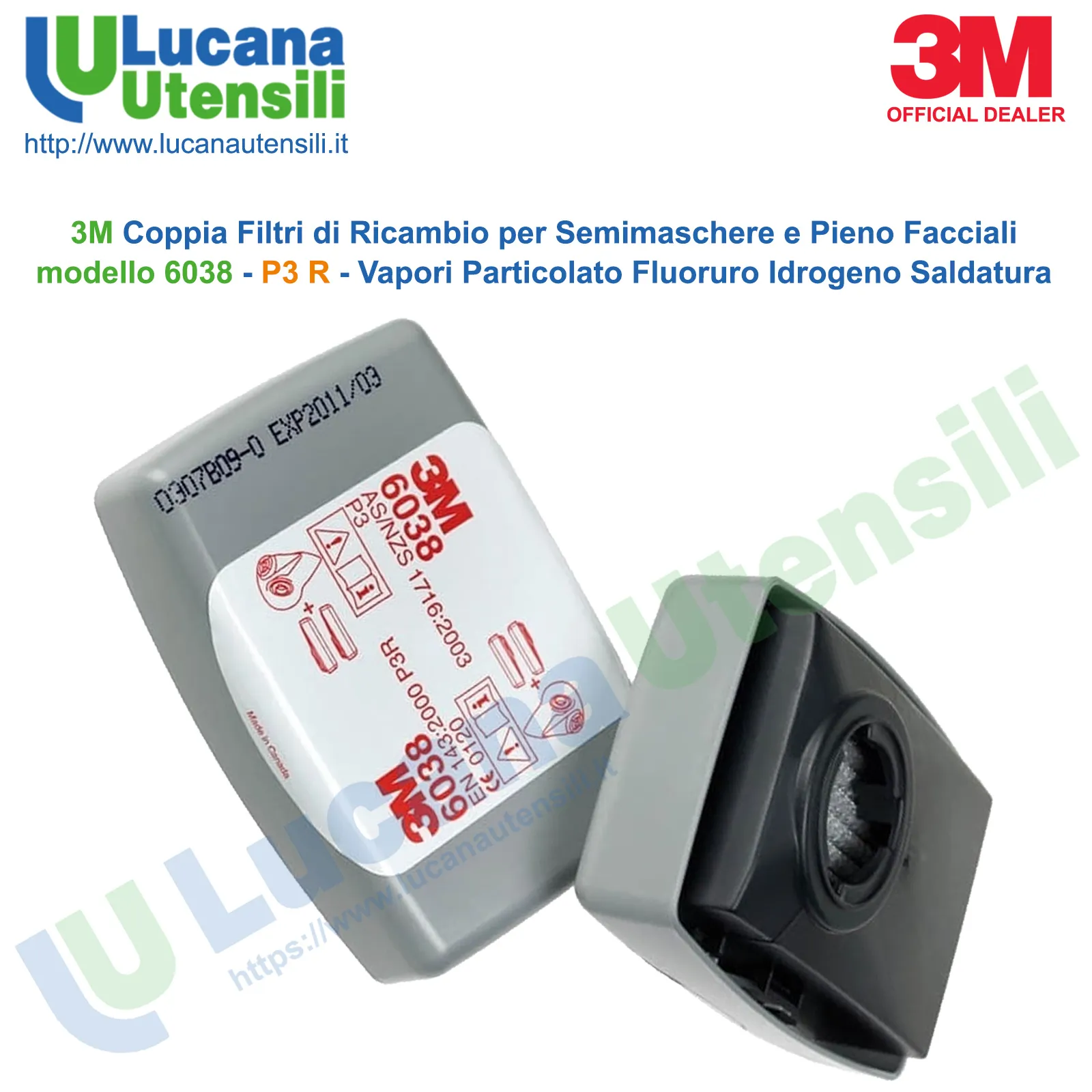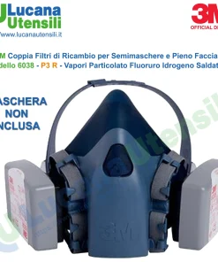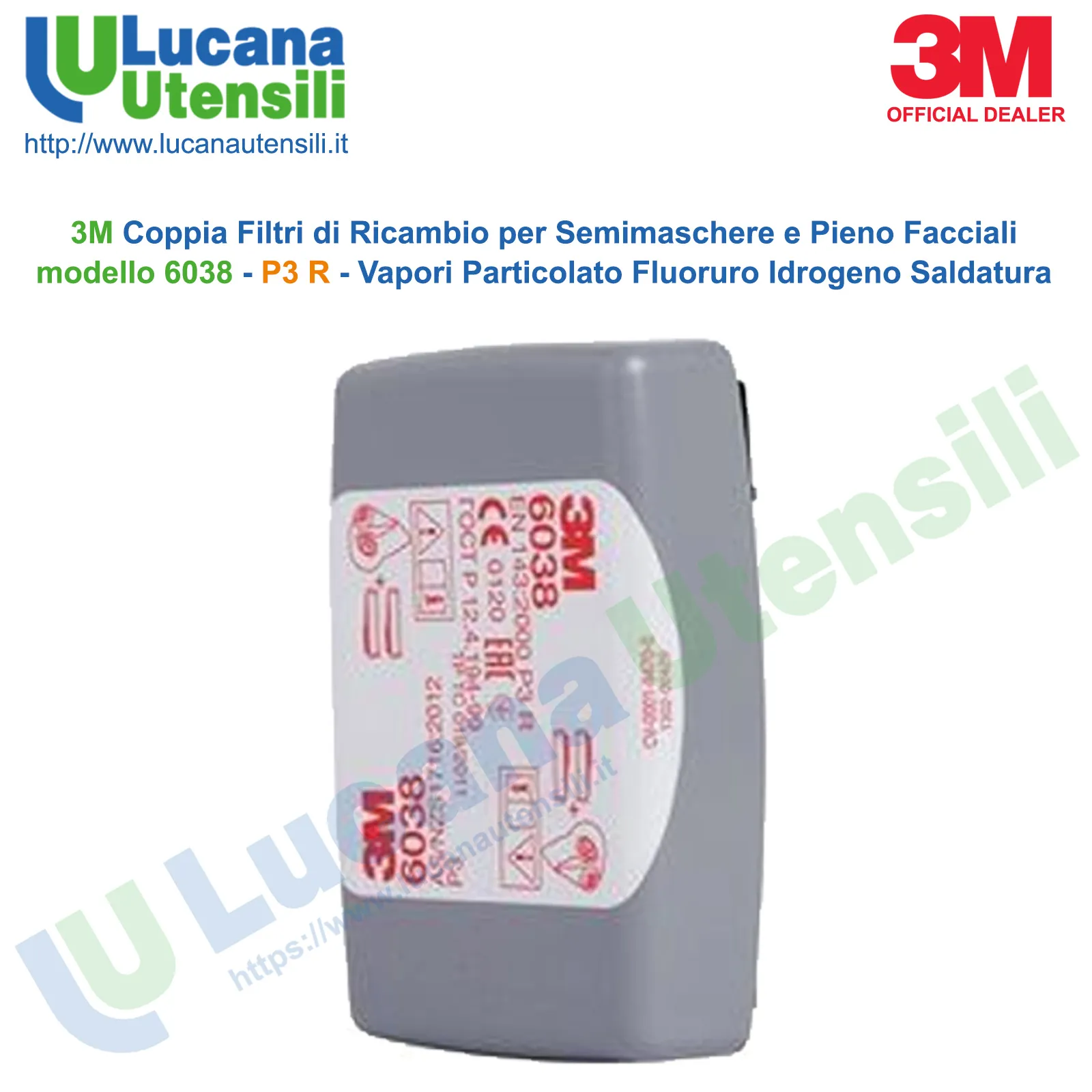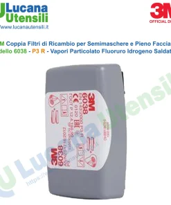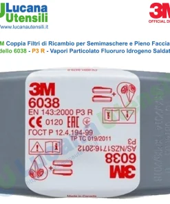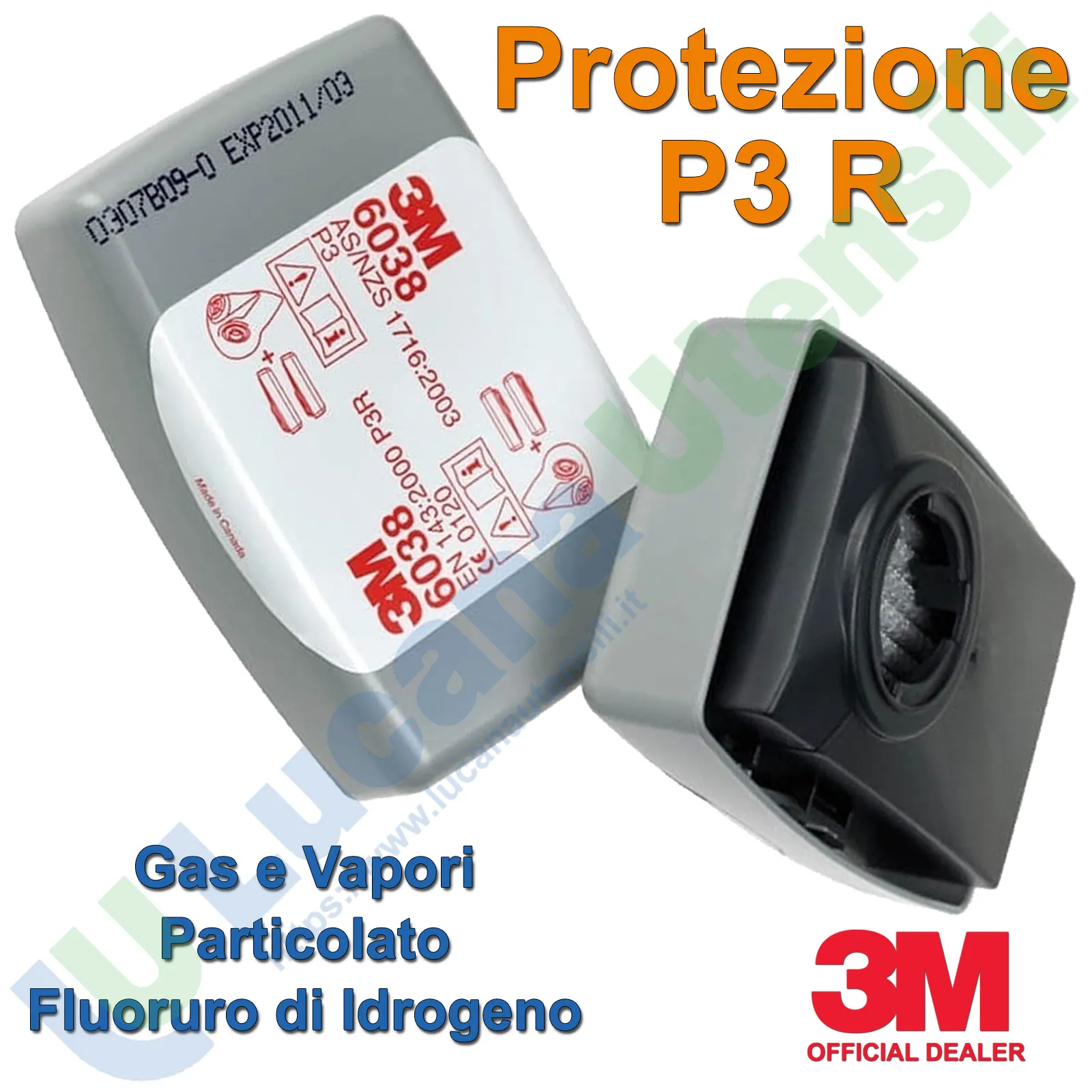 Per una protezione delle vie respiratorie di classe P3 R dalle particelle solide e liquide, oltre che dal gas fluoruro di idrogeno fino a 30 ppm (o 10 volte l’OEL), usa i filtri antiparticolato 3M™ 6038.
