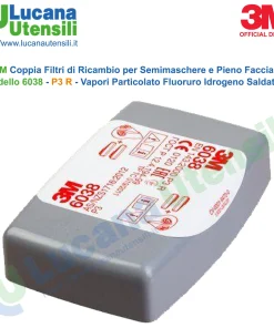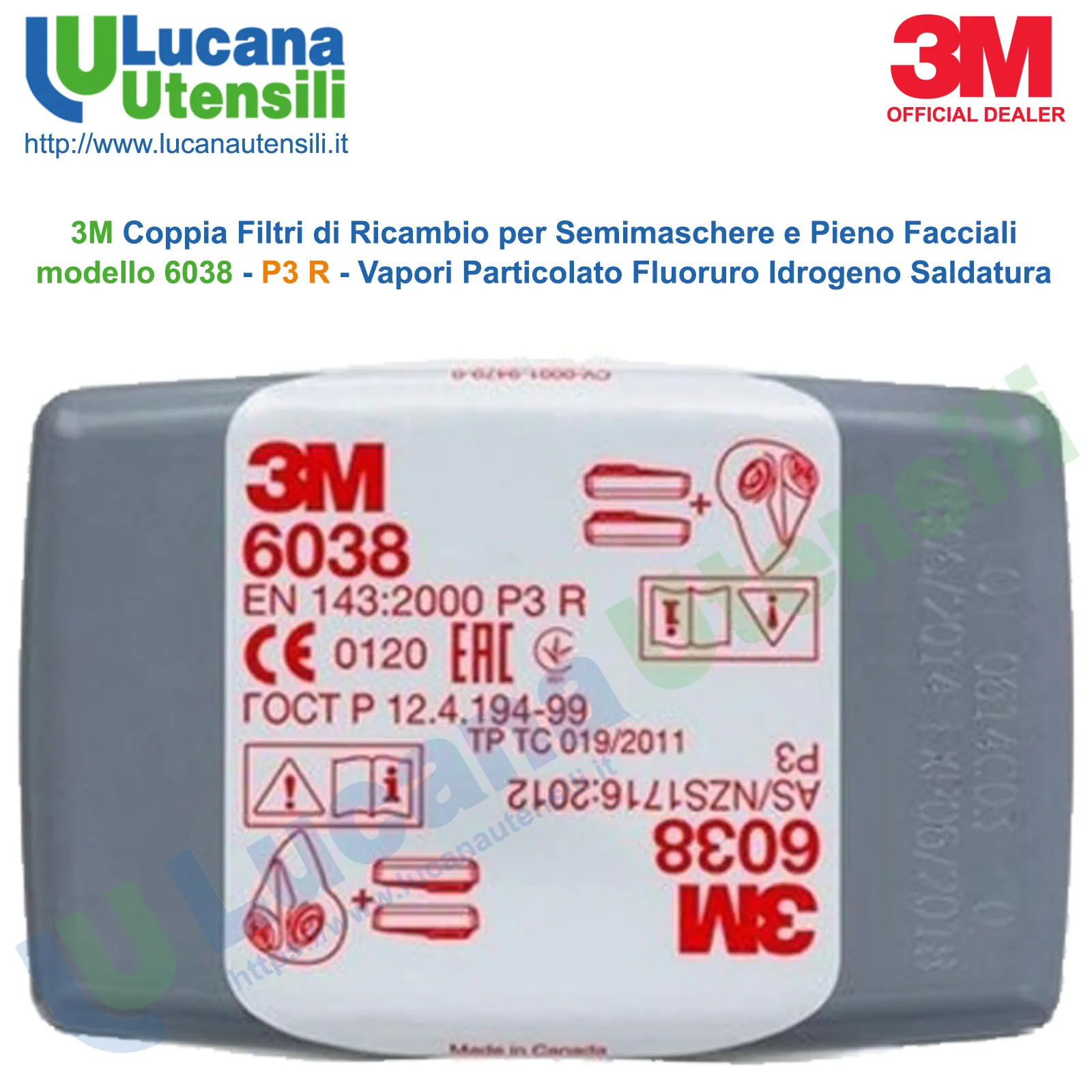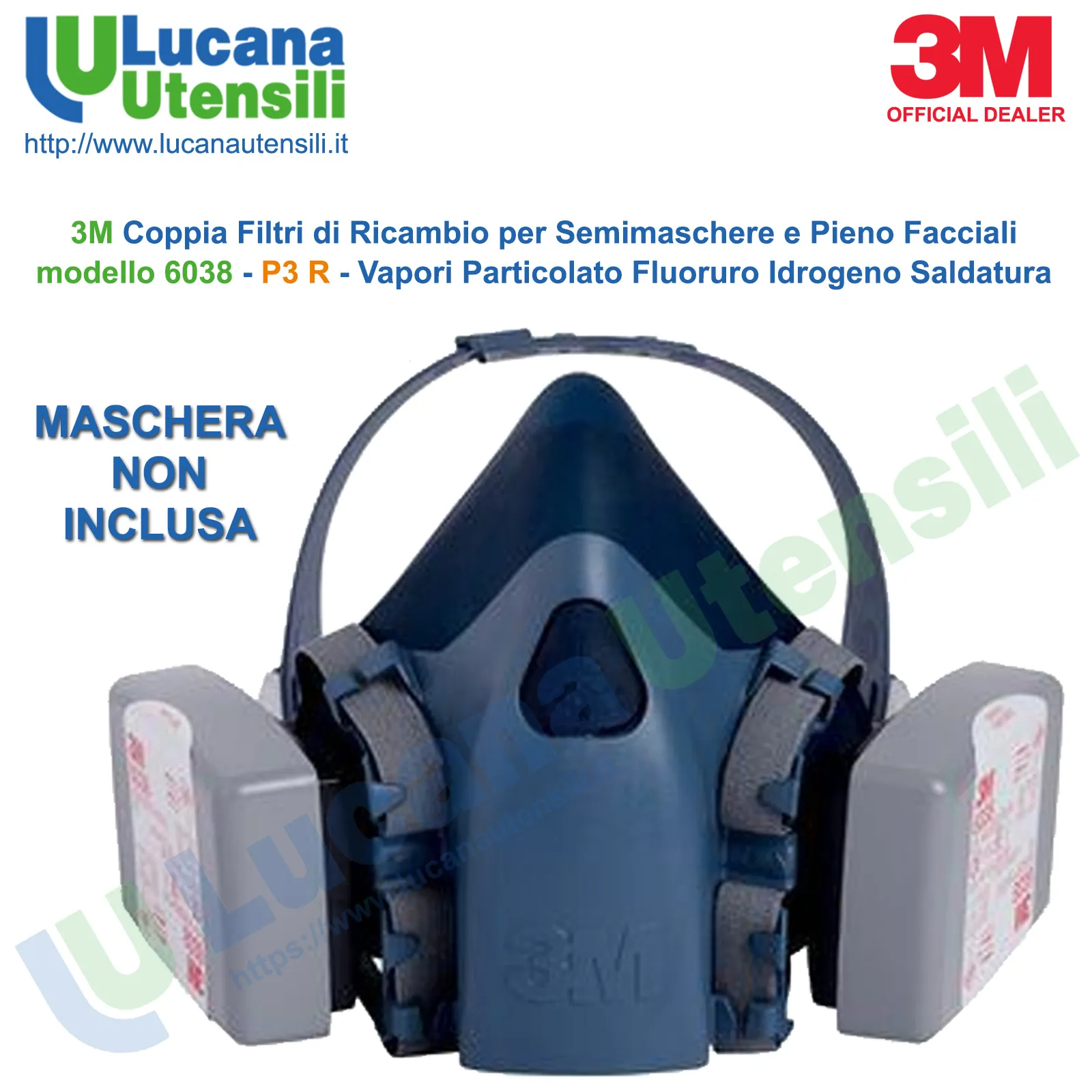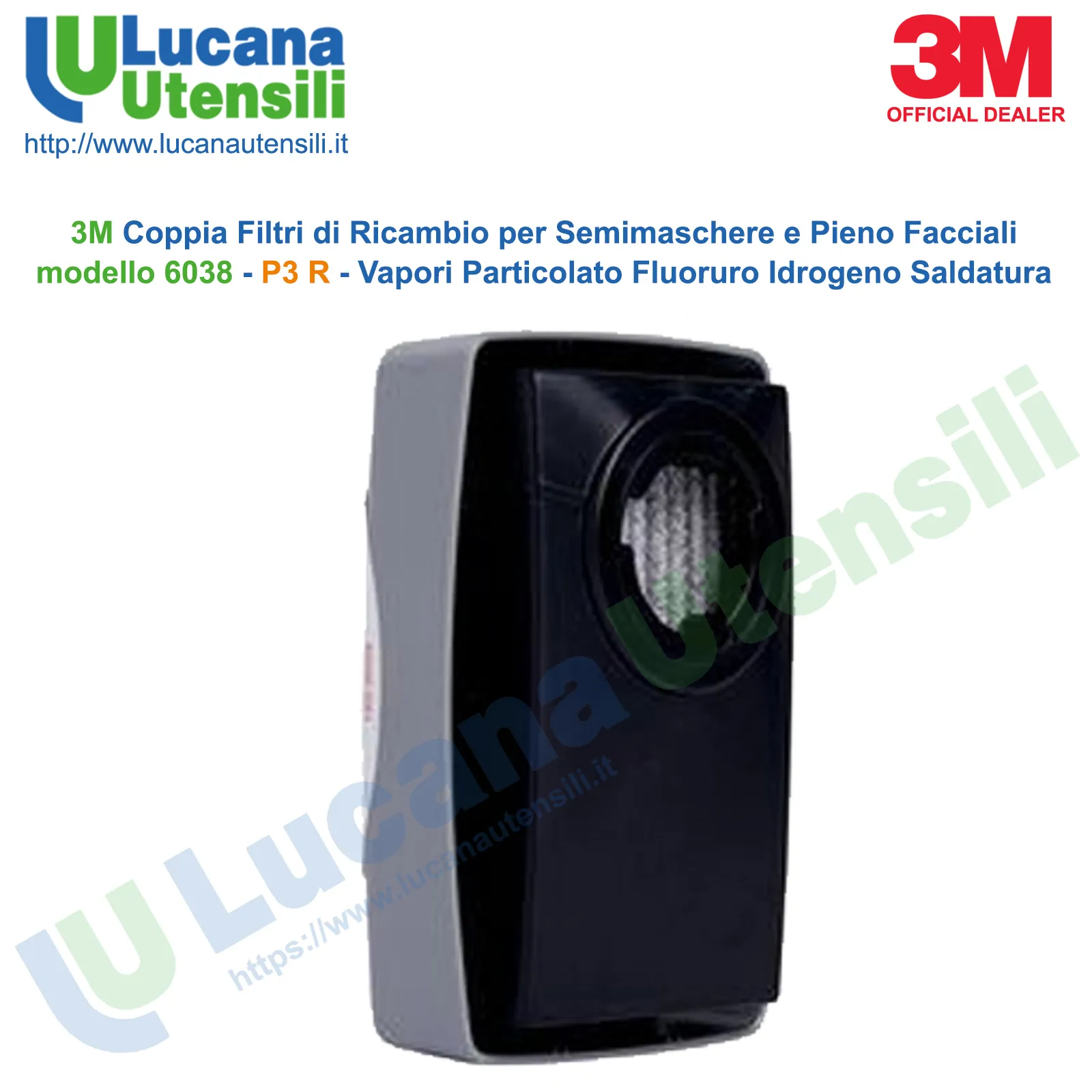 Per una protezione delle vie respiratorie di classe P3 R dalle particelle solide e liquide, oltre che dal gas fluoruro di idrogeno fino a 30 ppm (o 10 volte l’OEL), usa i filtri antiparticolato 3M™ 6038.