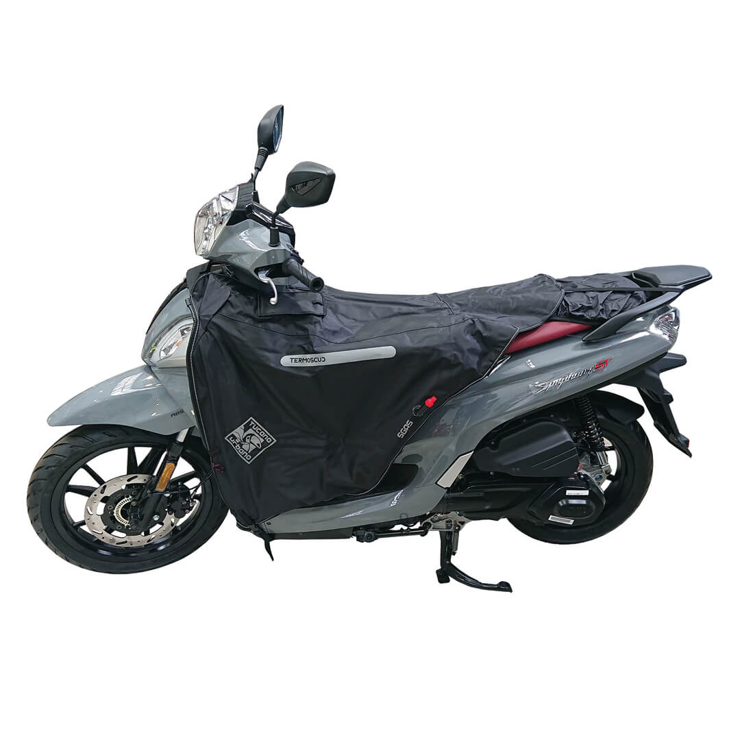 Coprigambe TUCANO URBANO TERMOSCUD R227. Il coprigambe originale dotato del SISTEMA GONFIABILE ANTISVENTOLIO BREVETTATO S.G.A.S: le camere gonfiabili sui bordi d’uscita laterali evitano lo sventolio alle alte velocita’. Costruzione a tre strati a garanzia di tenuta stagna e protezione termica: esterno in nylon pesante a tenuta stagna con cuciture nastrate membrana interna 100% impermeabile interno imbottito S.G.A.S. (sistema brevettato antisventolio) anello antifurto (solo sui modelli non avvitati) grande tasca portaoggetti coprisella inserito nella pettorina profilo rifrangente. E’ specificamente dedicato a: Sym SYMPHONY ST EURO 5 (> 2022)