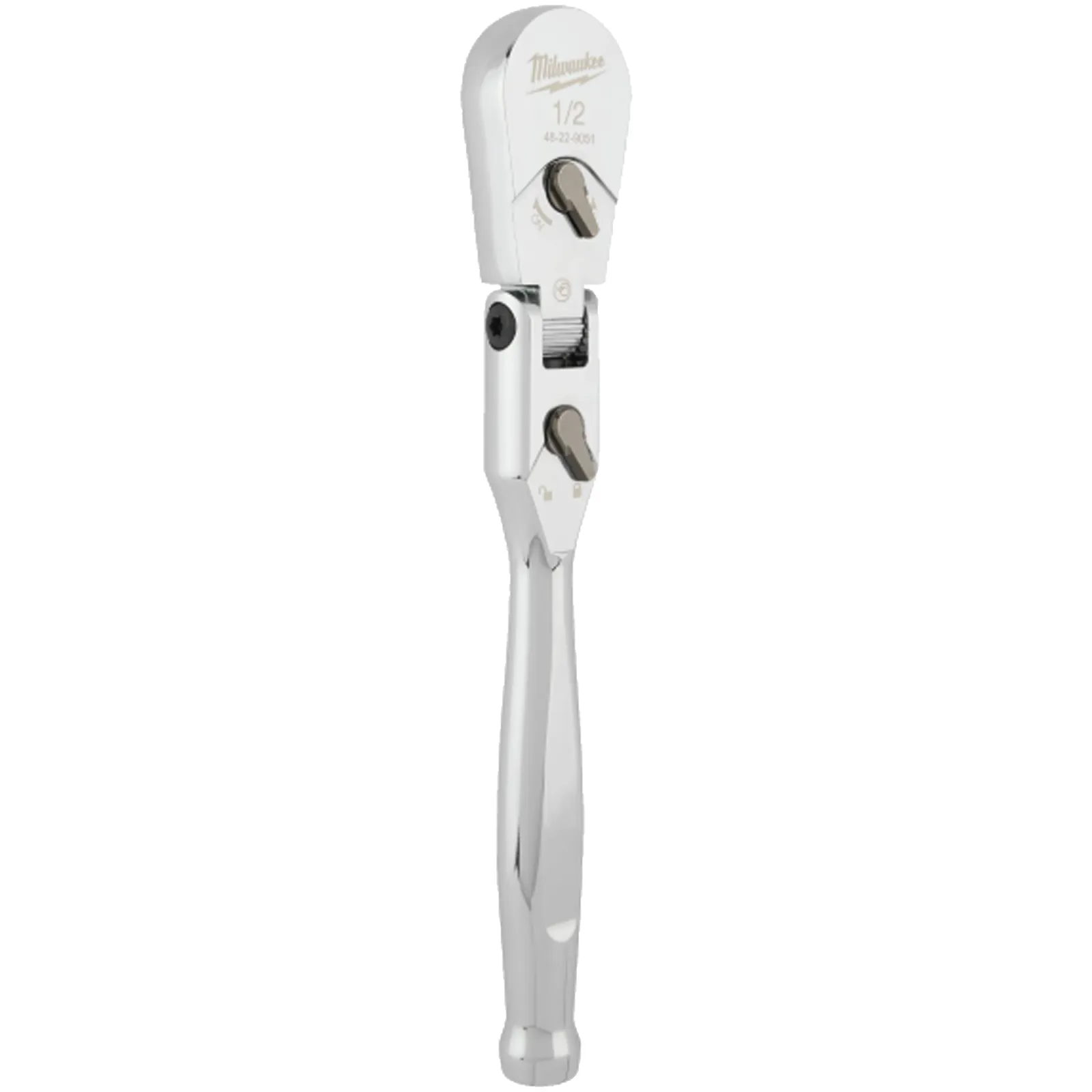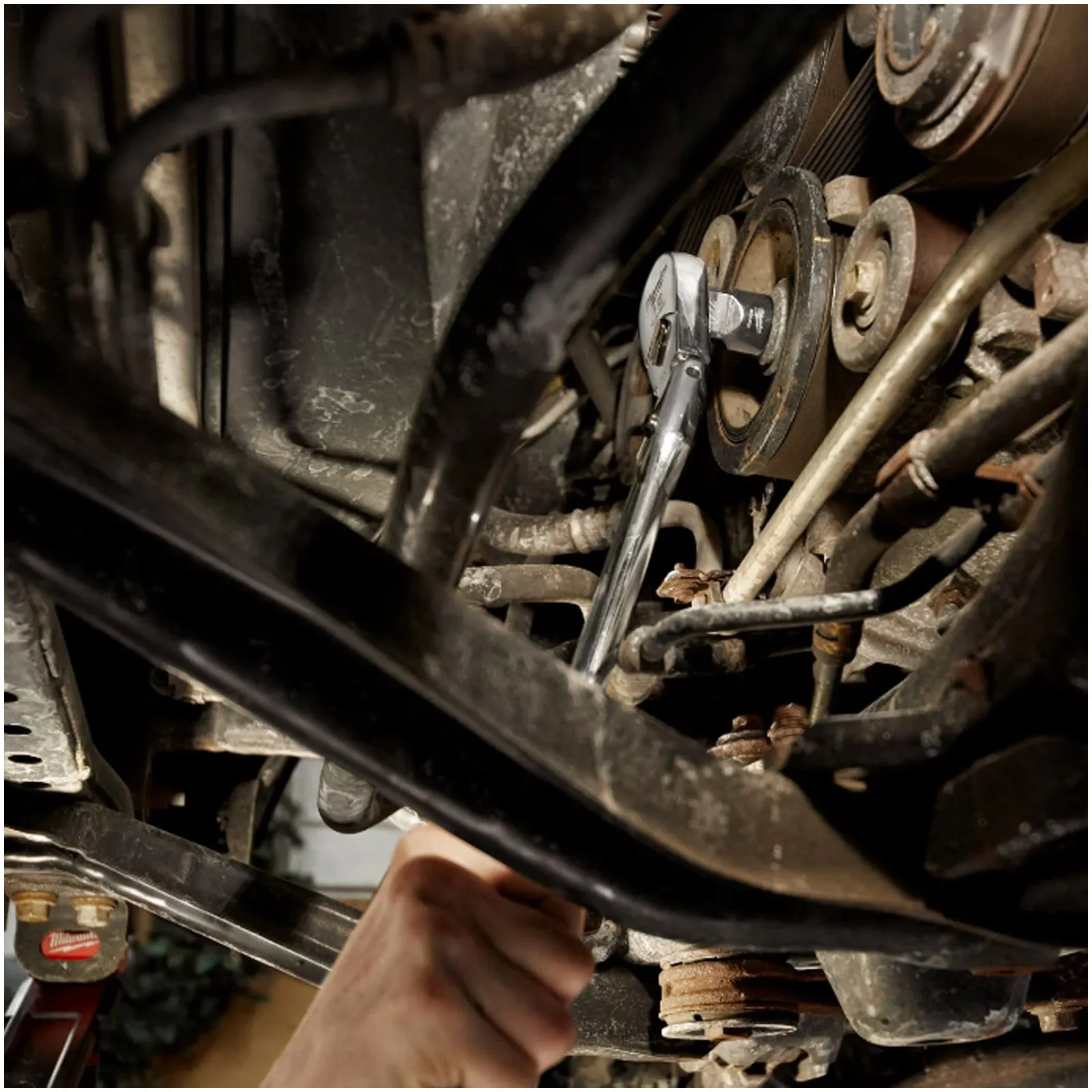 Realizzato in acciaio di alta qualità, il cricchetto 1/2″ con snodo Milwaukee è uno strumento resistente e durevole, progettato per resistere anche a un uso intensivo.