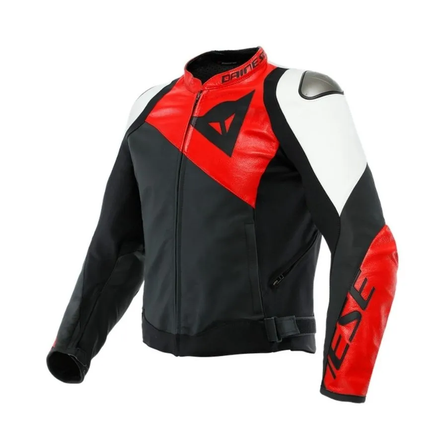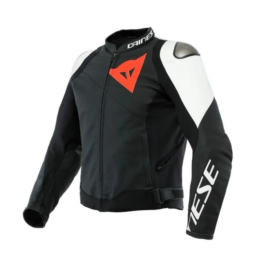 La giacca da moto Sportiva di Dainese è realizzata in morbida e resistente pelle bovina Tutu e dotata di protezioni Pro-Armor che offrono la massima protezione mantenendo flessibilità e libertà di movimento. Inoltre, oltre il 40% della sua superficie è ventilata. La protezione sulle spalle è abbinata anche a piastre in alluminio sostituibili all’esterno: una speciale tecnologia Dainese che facilita lo scorrimento in caso di caduta e previene pericolosi ribaltamenti sull’asfalto. Per aumentare ulteriormente la flessibilità e il comfort di guida, la struttura in pelle presenta inserti in tessuto elasticizzato S1 a 2 vie sui fianchi e all’interno delle braccia, oltre alla tecnologia microelastica sul retro, che migliora la libertà di movimento. Sportiva di Dainese è dotata di una tasca posteriore per il retrofit opzionale di un paraschiena, una chiusura a Velcro per regolare la vestibilità ai fianchi e due prese d’aria laterali che forniscono un raffreddamento ottimale in caso di aumento della temperatura. Ciò è supportato dal rivestimento traspirante Nanofeel® con trattamento agli ioni d’argento.