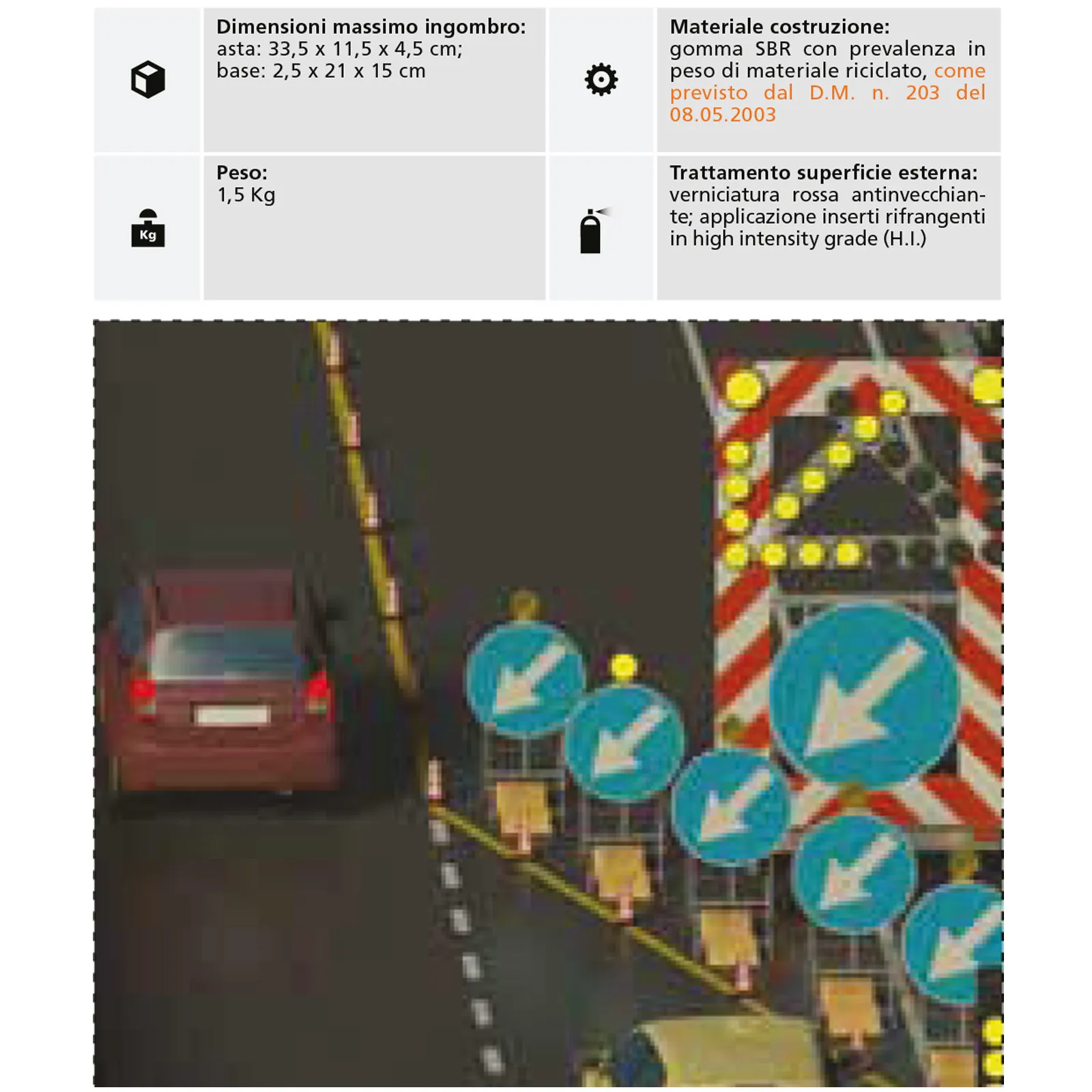 Il delineatore deve essere utilizzato per evidenziare zone di lavoro o di manutenzione di durata superiore ai 2 giorni.