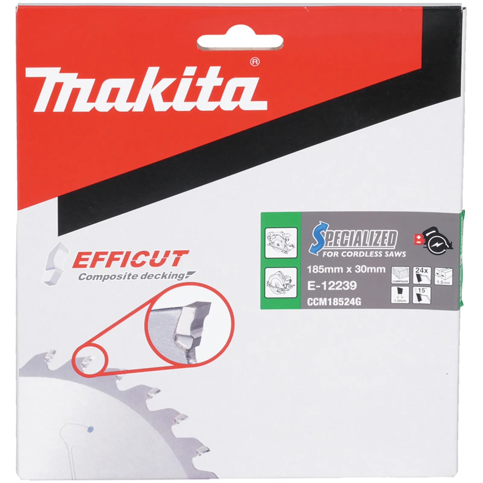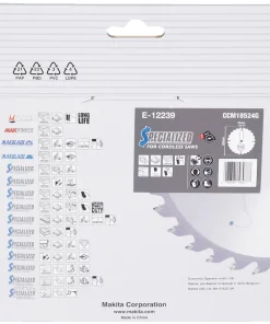 La lama per sega circolare Makita E-12239 da 185×30 mm di dimensione è ideale per eseguire tagli rapidi e precisi per legno.