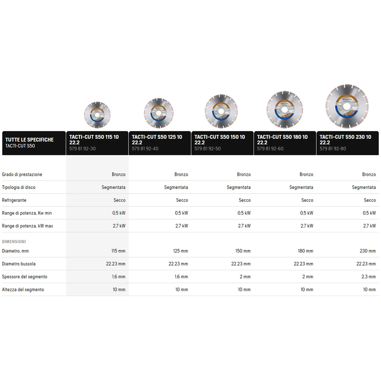 – Sicurezza: Tutte i dischi Husqvarna sono progettati e prodotti secondo gli standard EN13236. Husqvarna è anche un membro di spicco della OSA (Organizzazione per la Sicurezza degli Abrasivi), garantendo all’utente un funzionamento sicuro e senza problemi dei suoi prodotti.