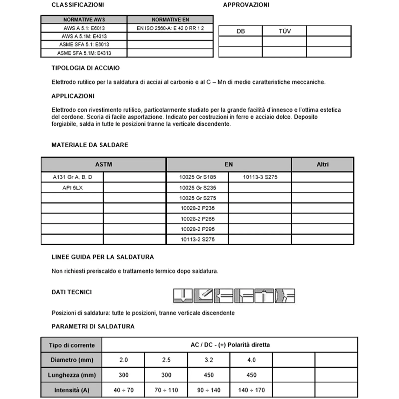 Elettrodo con rivestimento rutilico, particolarmente studiato per la grande facilità d’innesco e l’ottima estetica del cordone.