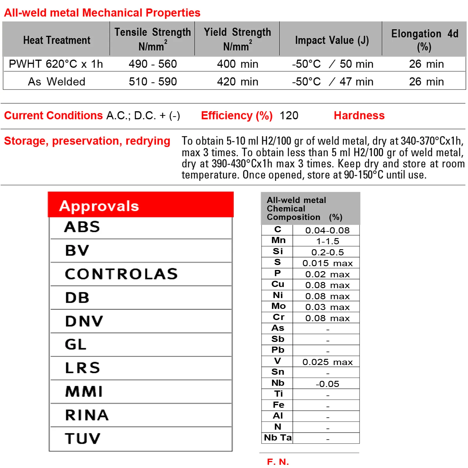Elettrodo basico contenente polvere di ferro nel rivestimento a bassissimo tenore di H2 con rendimento elevato.