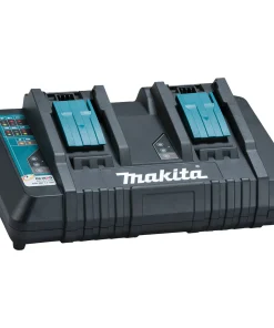 – 1 caricabatterie rapido modello DC18RD con indcatori di carica LED e ventole di raffreddamento la carica ottimale delle batterie. Consente di ricaricare 2 batterie contemporaneamente in circa 45 minuti (tempo di ricarica delle batterie in dotazione da 5.0Ah);